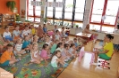 Dzieci obejrzały i wysłuchały bajek: ,,Czerwony Kapturek”, „Trzy świnki”, „Kotka psotka”, „Królowa pszczół”, „Smok Wawelski”, „Legenda o Skarbniku”, „Jak żyje ziemia?”, „Przygody pingwina Pingo – kreatywny recykling i tajemnicza skrzynia oraz nieznośne śmieci w oceanach” przedstawione w formie teatrzyku, który łączy książki ilustrowane i teatr. Przedszkolaki na początku dowiedziały się, że słowo „kamishibai”, pochodzi z języka japońskiego, gdzie „kami” – oznacza „papier”, natomiast „shibai” – „sztukę”. Dlatego też teatrzyk ten nazywany jest również teatrem obrazkowym, a bajka wkładana jest do drewnianej skrzyni - ,,butai”. Ta alternatywna forma czytania mocno pobudza dziecięcą wyobraźnię i pozwala na większe skupienie na treści bajki. Maluchy z uwagą i zaciekawieniem wysłuchały bajek, a papierowy spektakl z pewnością zabrał je w podróż do wyjątkowego świata teatru i literatury.