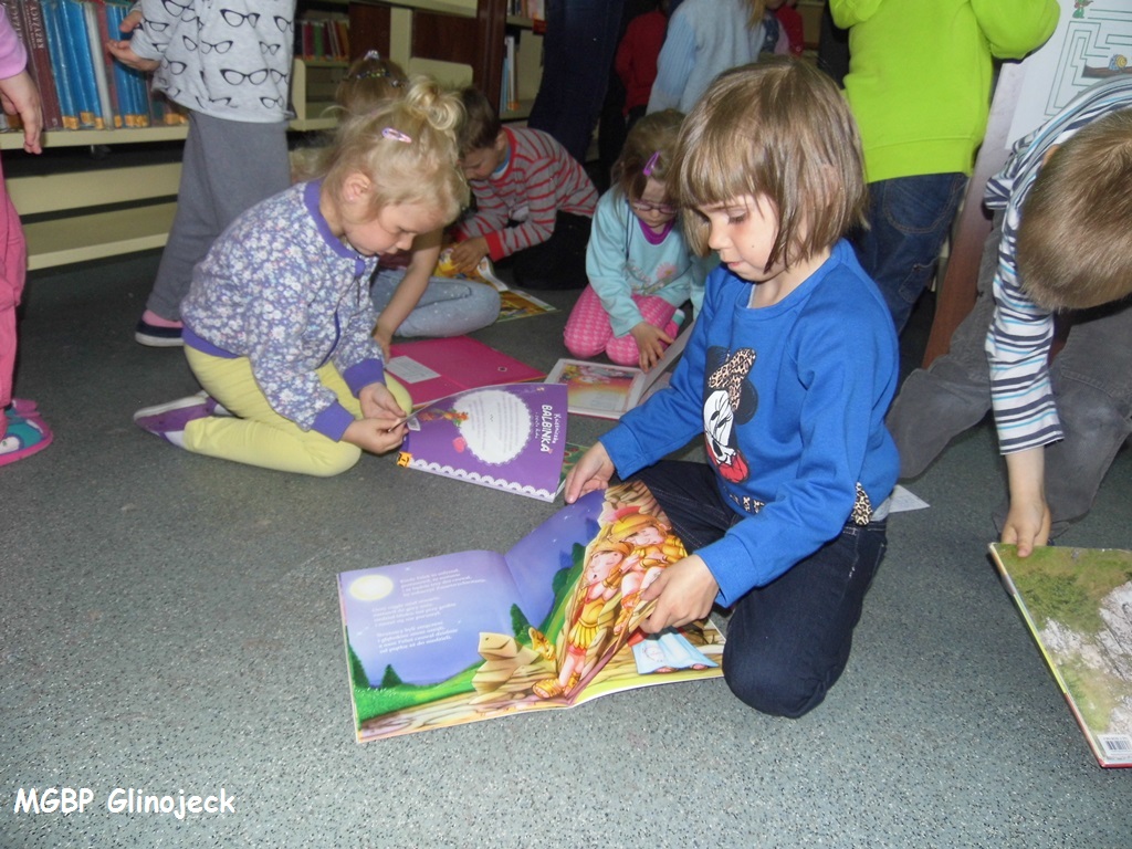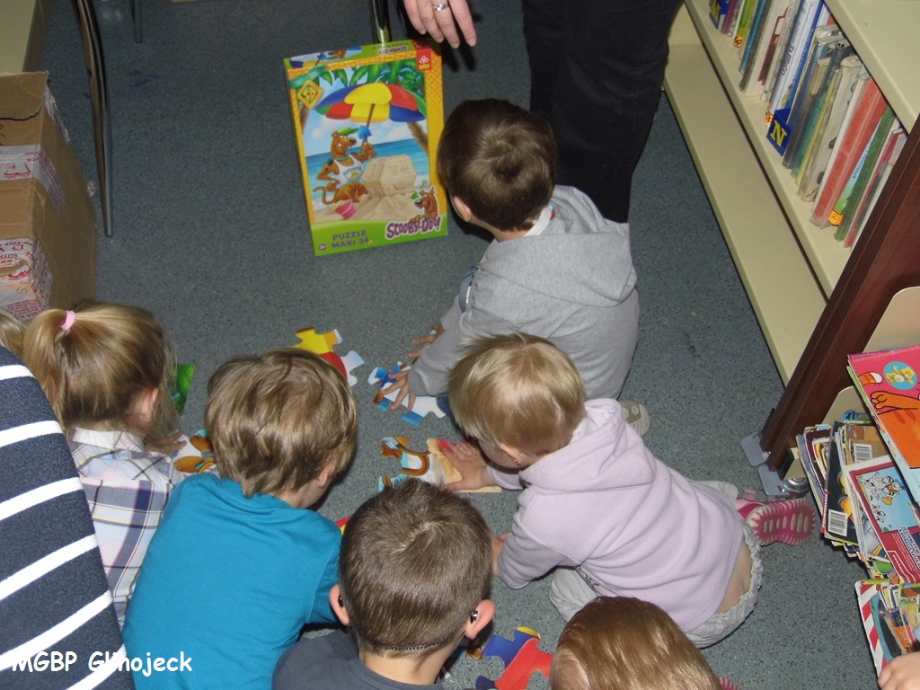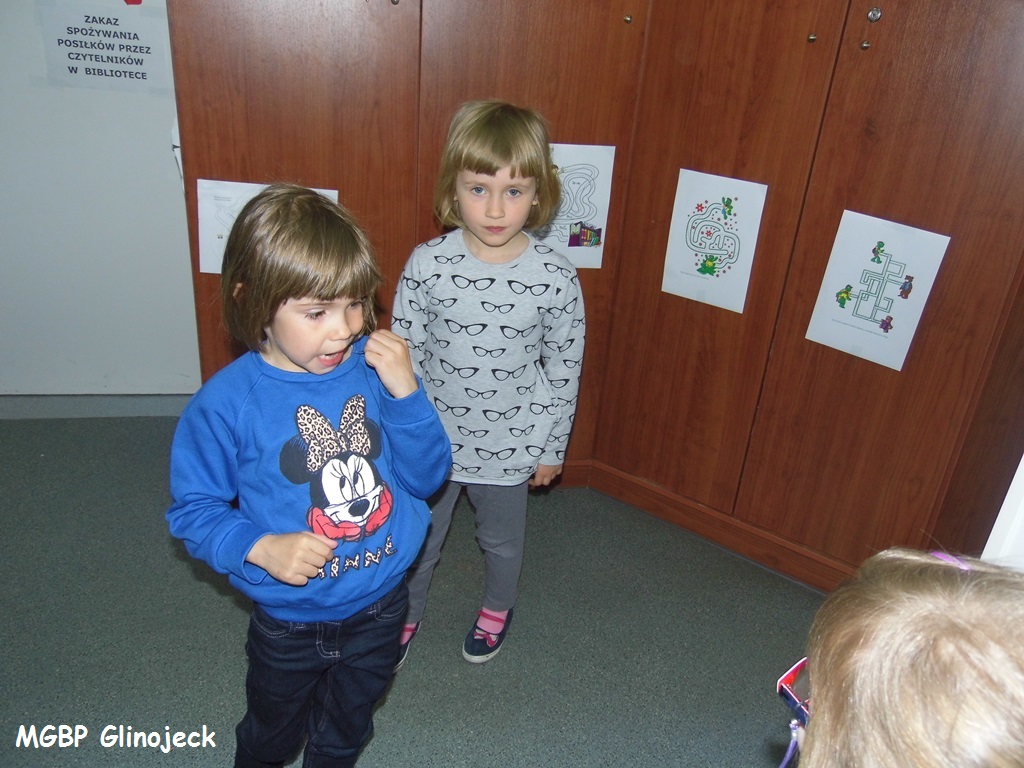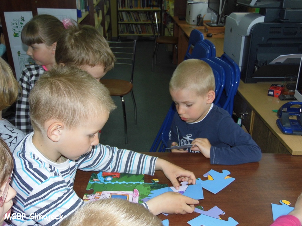 Dzieci były bardzo aktywne podczas lekcji, odpowiadały na pytania, czynnie brały udział w dyskusji. Największe emocję i euforię wśród dzieci wzbudziła zabawa z książkami oraz labirynt, w którym dzieci m. in. znaleźć drogę do biblioteki, jak również wszelkie łamigłówki dotyczące postaci bajkowych.