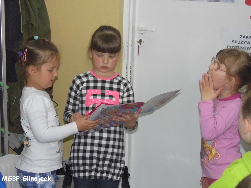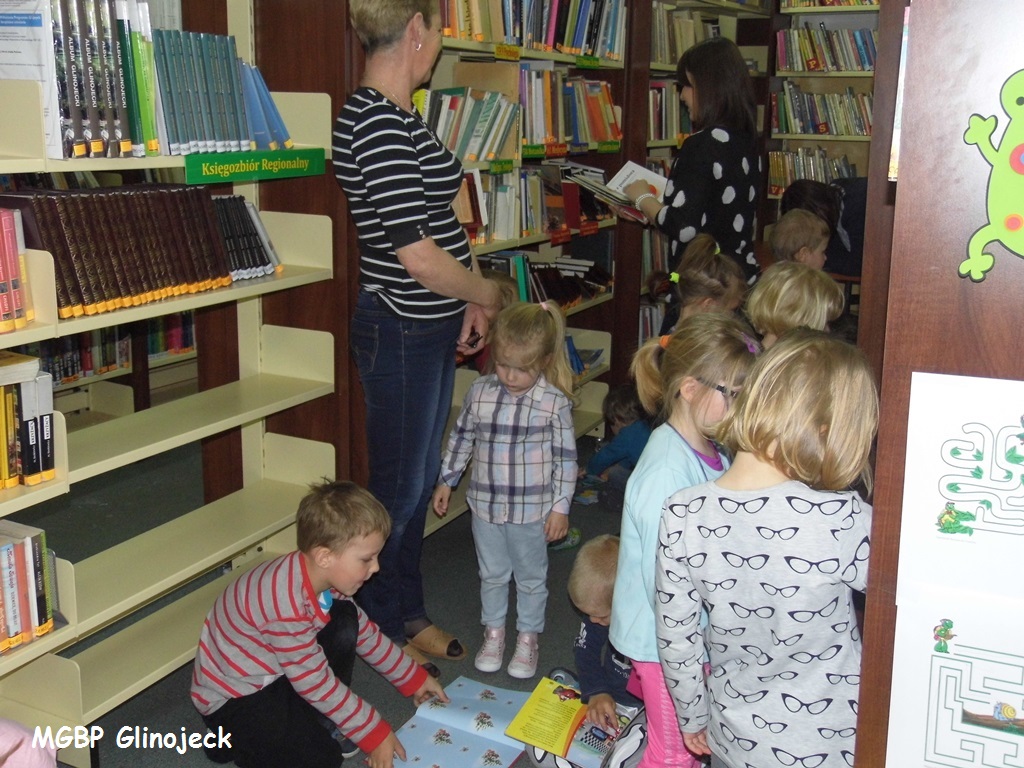 4 maja 2015 roku Miejsko-Gminna Biblioteka Publiczna w Glinojecku gościła przedszkolaków z Miejsko-Gminnego Przedszkola Publicznego w Glinojecku prowadząc lekcję biblioteczną. Najmłodsi czytelnicy zapoznali się z biblioteką. Tematem lekcji była "Nasza pierwsza wizyta w bibliotece publicznej". Lekcja miała na celu oswojenie dzieci z biblioteką, zwrócenie uwagi na właściwe zachowanie się w bibliotece, zapoznanie z podstawowymi zasadami poszanowania książek, rozbudzenie ciekawości tekstem literackim, zachęcanie do wypowiedzi powiązanych z książką.