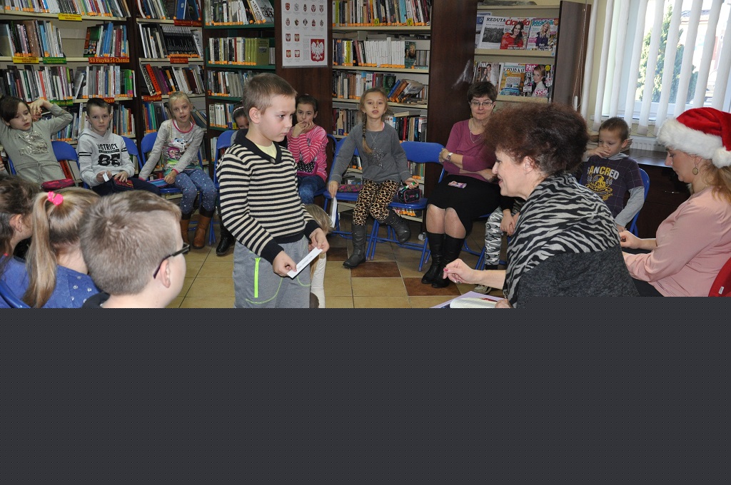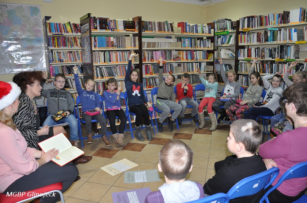 12 grudnia 2016 r. po raz drugi uczniowie klasy III a wraz z uczniami zakwalifikowanymi na zajęcia rewalidacji indywidualnej ze Szkoły Podstawowej w Glinojecku uczestniczyli tym razem w świątecznych zajęciach biblioterapii które odbywają się w Miejsko-Gminnej Bibliotece Publicznej w Glinojecku. Tym razem dzieci poznały bajkę pt. "Opowieść Wigilijna" o starym kupcu Ebenezerze Scrooge, znanym ze swego skąpstwa. Bohater powraca w Wigilię Bożego Narodzenia do domupo pracy w swoim kantorze. Tamzjawia mu się duch jego wspólnika, Jakuba Marley'a,który ostrzega: jeśli Scrooge się nie zmieni, po śmierci czeka go wieczna męka. Zjawa zapowiada także odwiedziny trzech innych duchów,dzięki którym los starego skąpca może się odmienić. Duchy rzeczywiście przybywają i ukazują Ebenezerowi przeszłość, teraźniejszość i przyszłość (jeśli jego życie się nie zmieni). Po tych wizytach skąpiec ulega wielkiej przemianie. Podwyższa pensję pracownikowi, opiekuje się jego kalekim synkiem, Małym Timem, i hucznie obchodzi każde Boże Narodzenie.