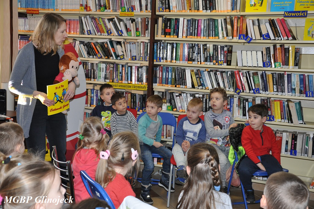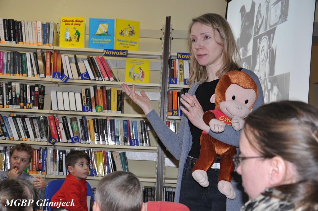 13 marca w Miejsko-Gminnej Bibliotece Publicznej w Glinojecku oraz w Filii Bibliotecznej w Ościsłowie odbyły się warsztaty literacko-plastyczne pt. „Jestem ciekawski – wszystko mnie interesuje” w którym udział wzięły dzieci z punktu przedszkolnego przy ZSO w Ościsłowie oraz z Akademii Małego Smerfa – Niepublicznego Przedszkola w Glinojecku. Gościem specjalnym spotkania była Pani Anna Uszyńska – przedstawiciel wydawnictwa „Omni Modo”, która opowiedziała o przygodach małej niesfornej małpki o imieniu George. Celem zajęć było zachęcenie najmłodszych do odwiedzania biblioteki i aktywnego korzystania z jej zbirów.
