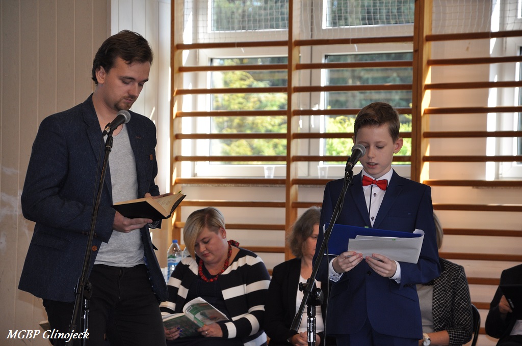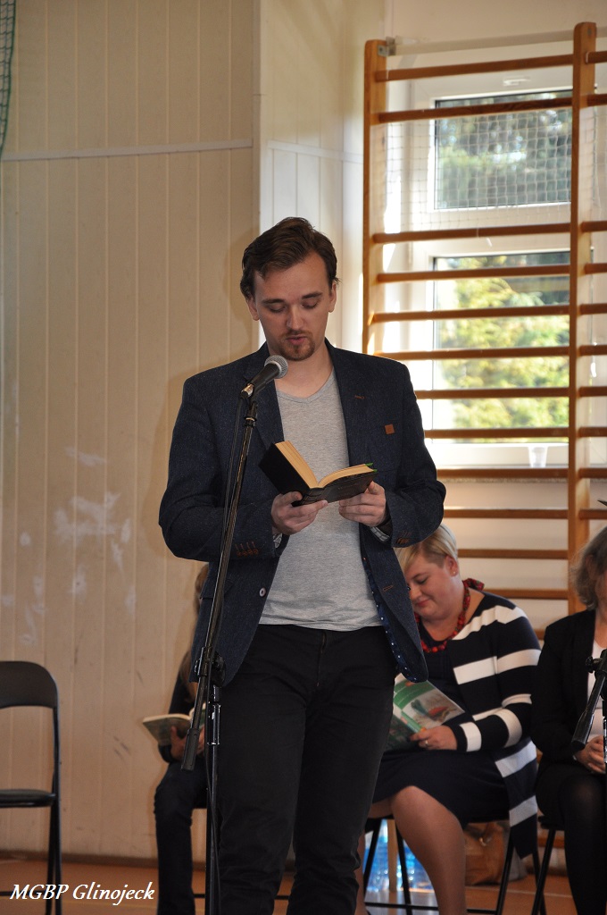 Gości powitała i przedstawiła Urszula Wróblewska – Kierownik Miejsko-Gminnej Biblioteki Publicznej w Glinojecku, a oficjalne czytanie rozpoczął Pan Łukasz Kapczyński - Burmistrz Miasta i Gminy Glinojeck. Niecodziennym gościem spotkania był Kuba Michalski – polski piosenkarz, kompozytor i autor tekstów, który wystąpił w roli Poety oraz swoim koncertem uświetnił drugą część spotkania porywając publiczność do śpiewania.