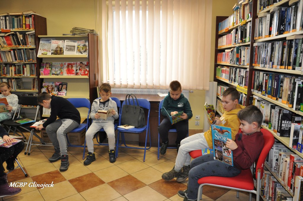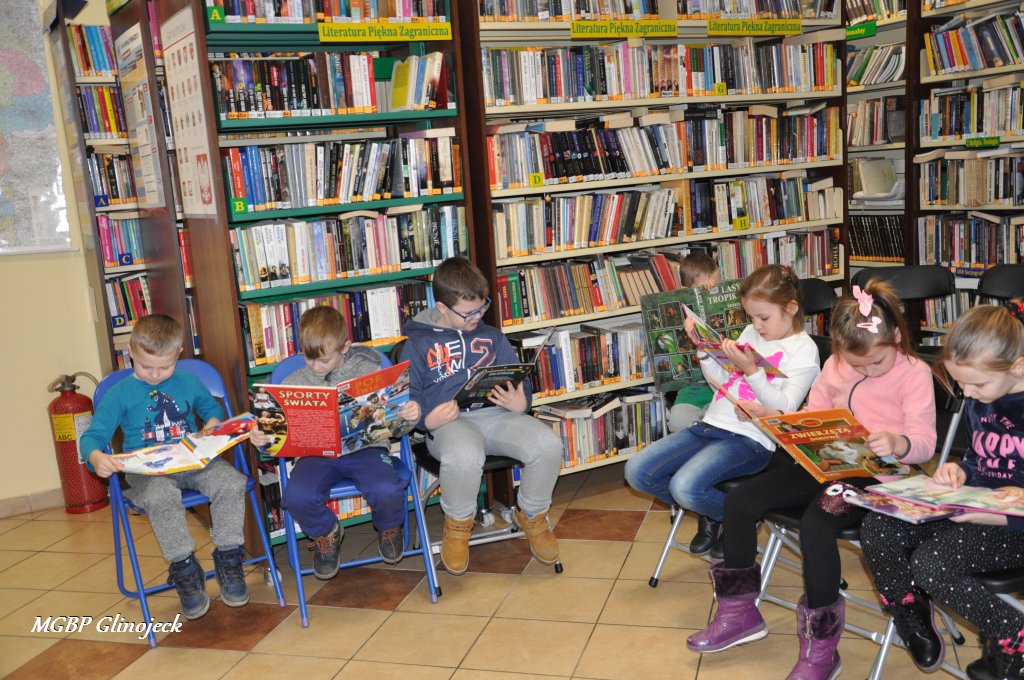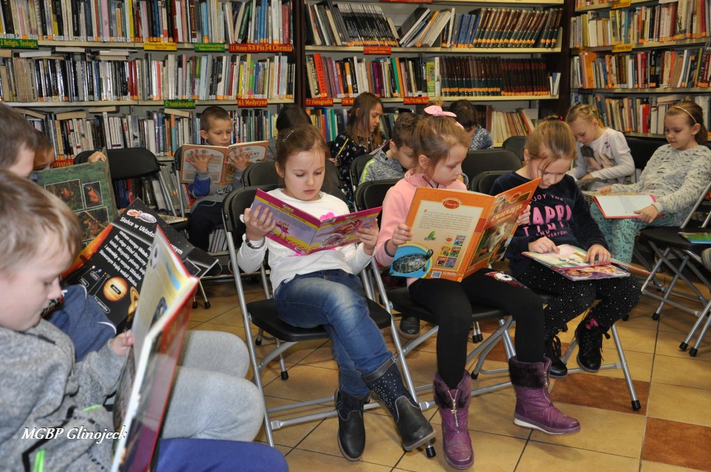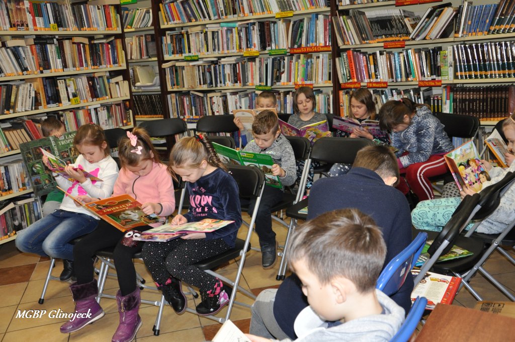 7 lutego 2018 r. Miejsko-Gminną Bibliotekę Publiczną w Glinojecku odwiedzili uczniowie klasy I c Szkoły Podstawowej w Glinojecku. Dla większości dzieci była to pierwsza wizyta w tego typu placówce. Głównym celem lekcji było zapoznanie dzieci z biblioteką, księgozbiorem biblioteki i pracą bibliotekarza. Uczniowie mieli możliwość zajrzeć w każdy biblioteczny zakątek i nie omieszkali z tej sposobności skorzystać. Także biblioteczny księgozbiór przestał mieć dla nich jakiekolwiek tajemnice, zaś książki przeznaczone dla najmłodszych czytelników cieszyły się ogromnym zainteresowaniem.