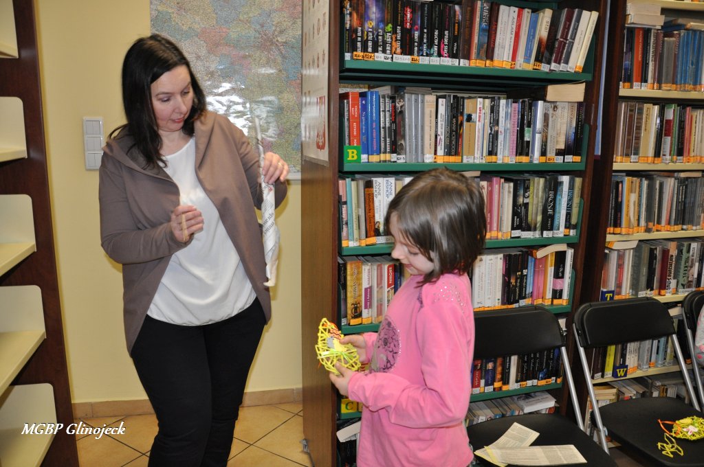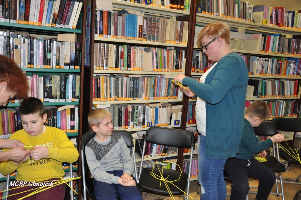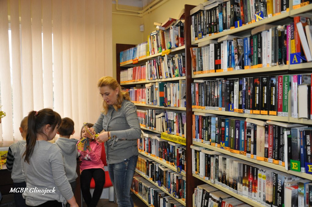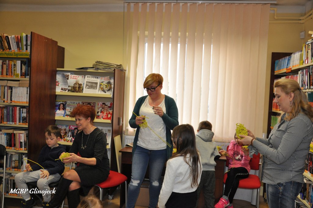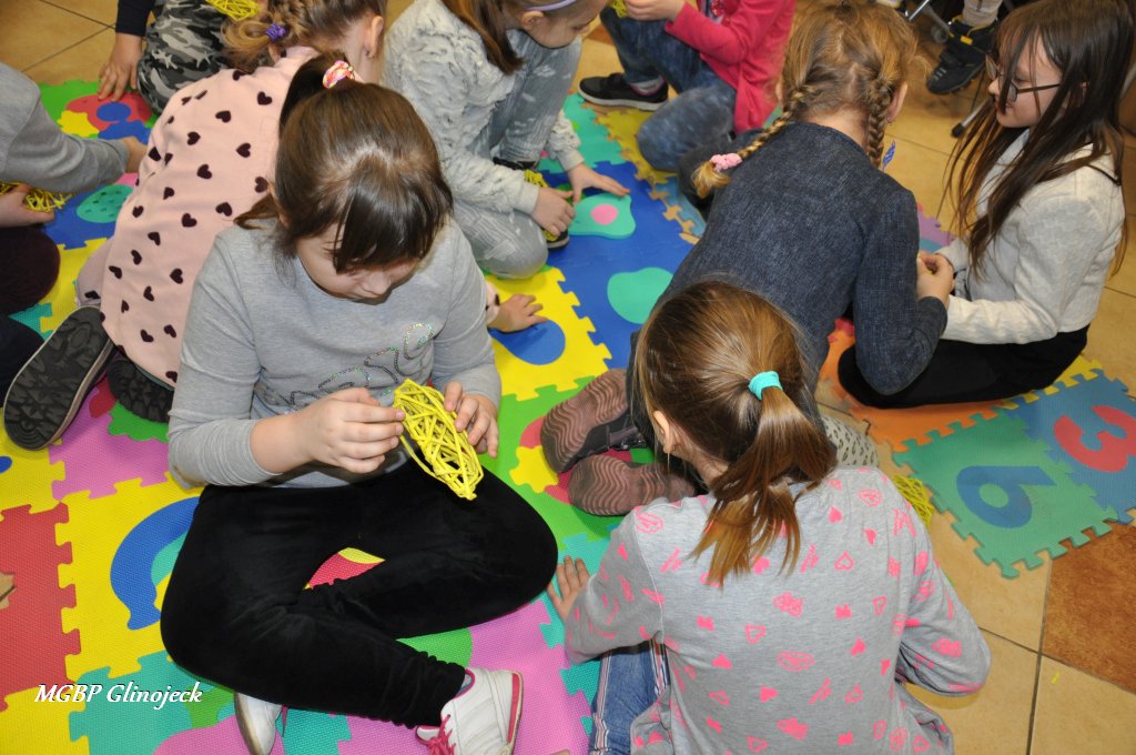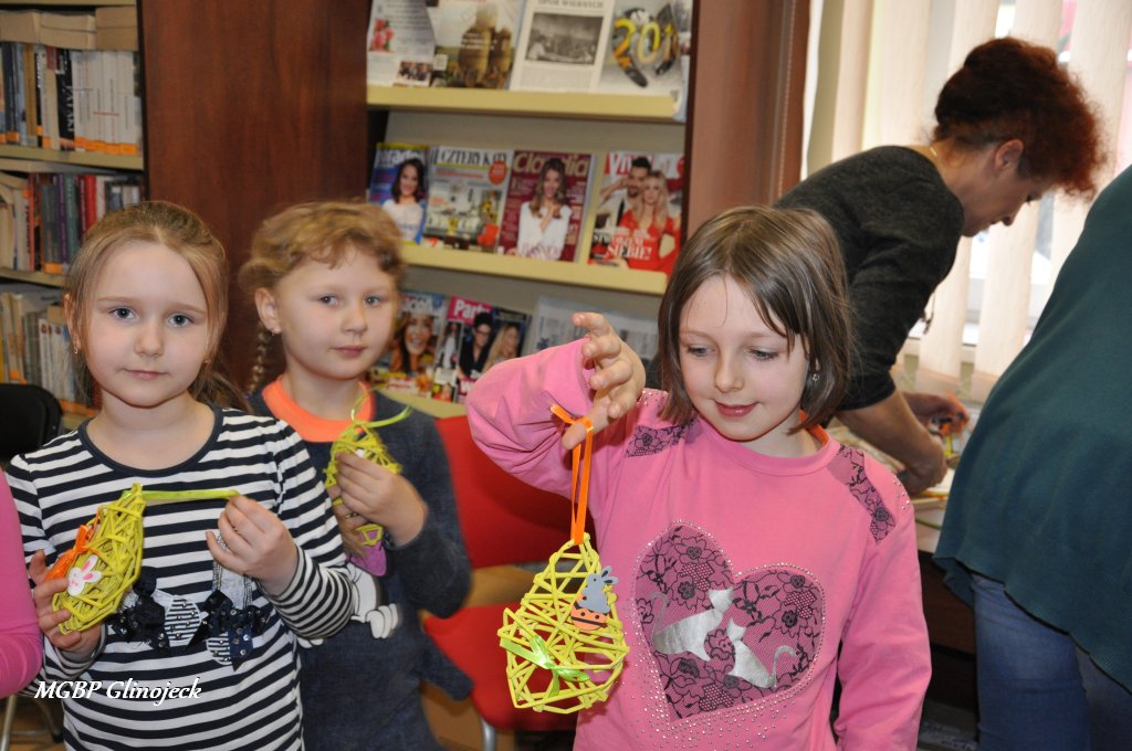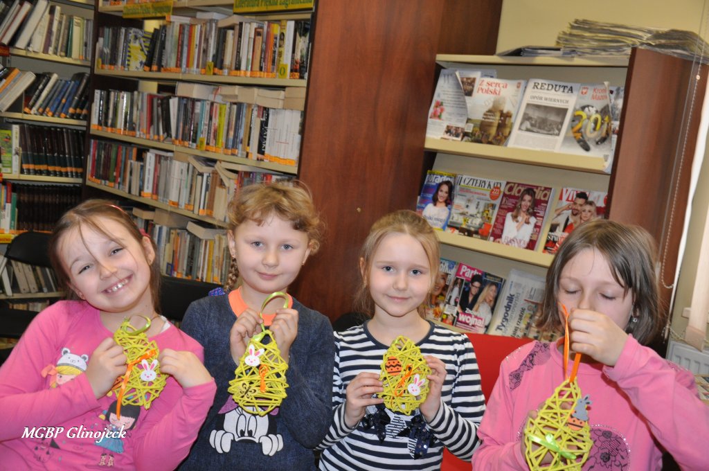 23 marca 2018 r. w Miejsko-Gminnej Bibliotece Publicznej w Glinojecku odbyły się warsztaty z wikliny papierowej. Pierwszoklasiści pod okiem pracowników biblioteki i wychowawczyni klasy, wyplatały piękne Wielkanocne jajka. Następnie zdobiły je wstążkami i świątecznymi ozdobami.