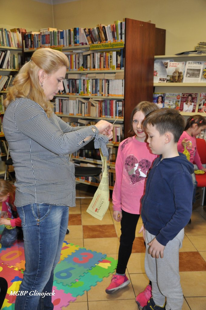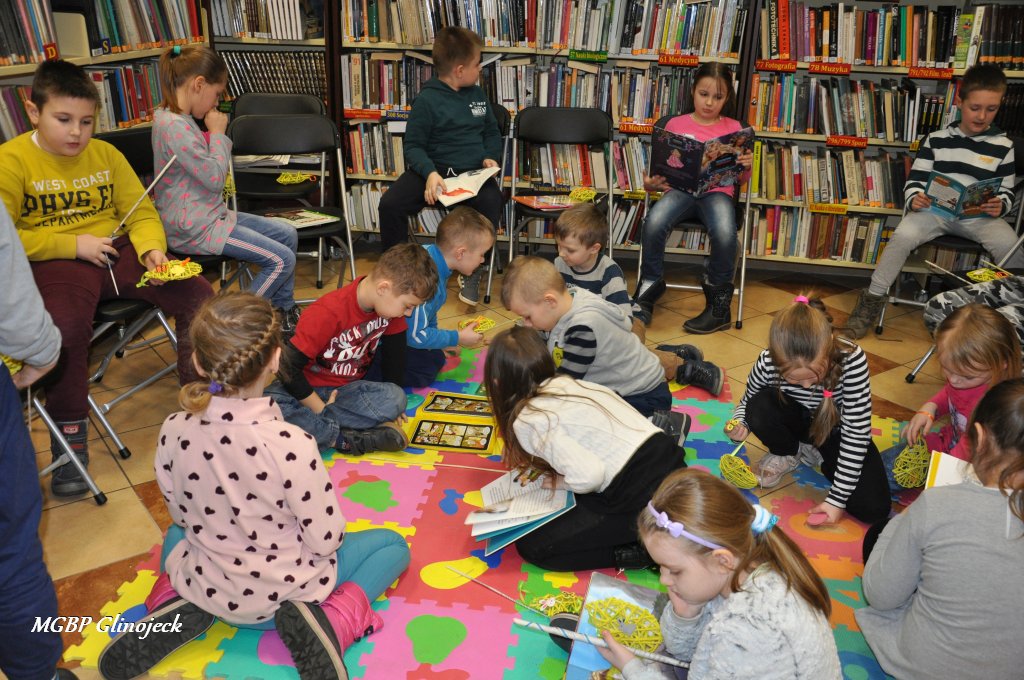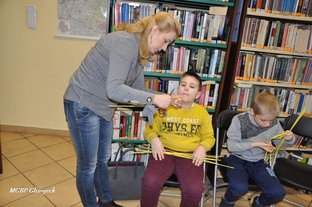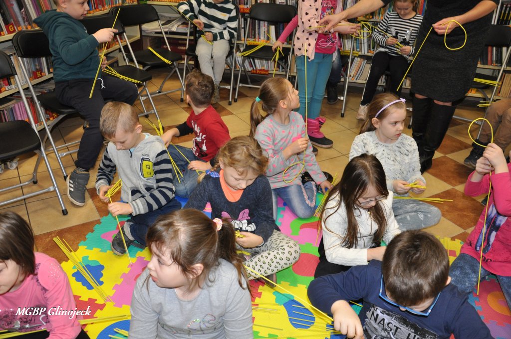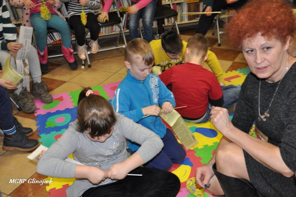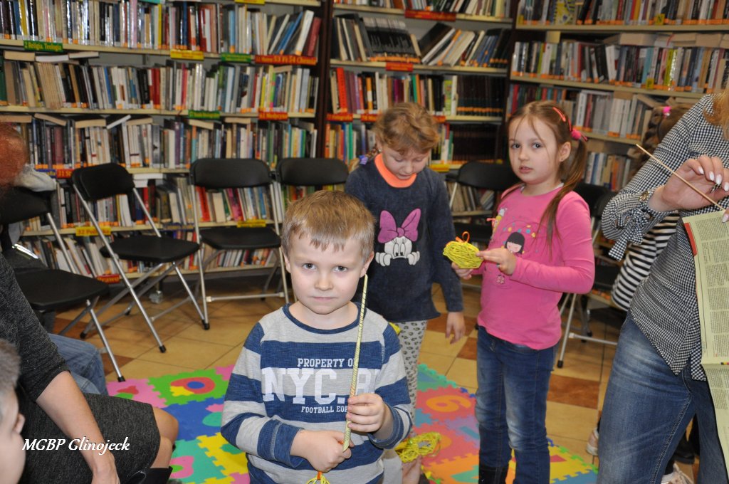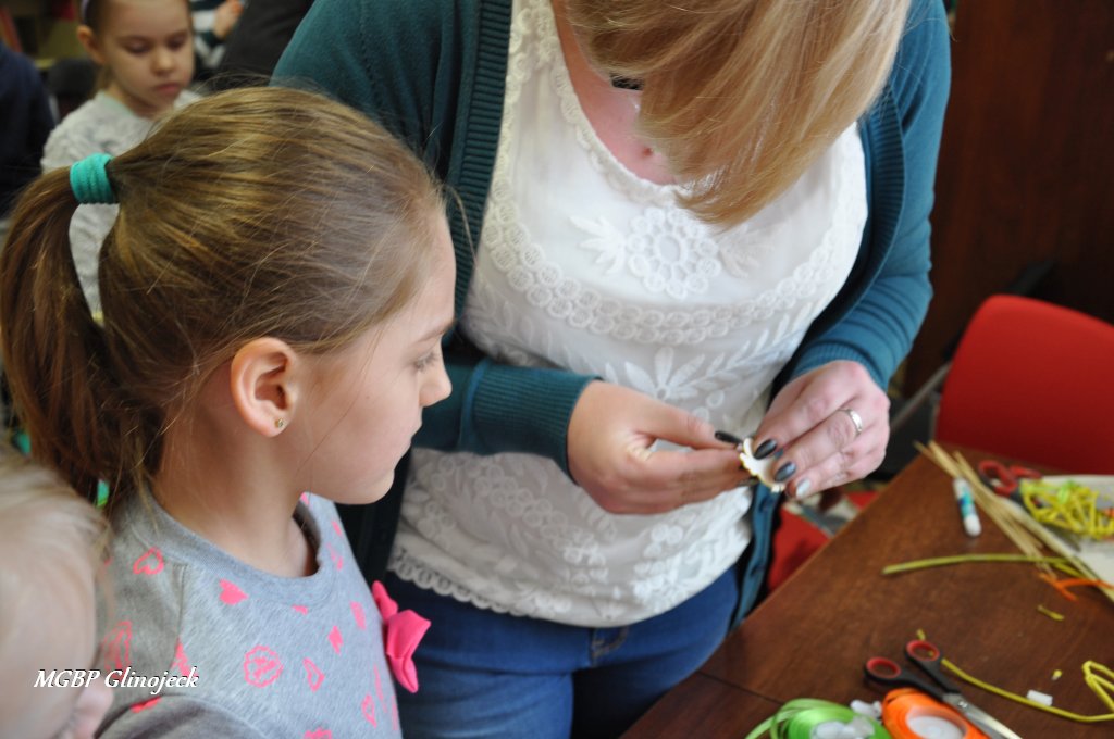 23 marca 2018 r. w Miejsko-Gminnej Bibliotece Publicznej w Glinojecku odbyły się warsztaty z wikliny papierowej. Pierwszoklasiści pod okiem pracowników biblioteki i wychowawczyni klasy, wyplatały piękne Wielkanocne jajka. Następnie zdobiły je wstążkami i świątecznymi ozdobami.