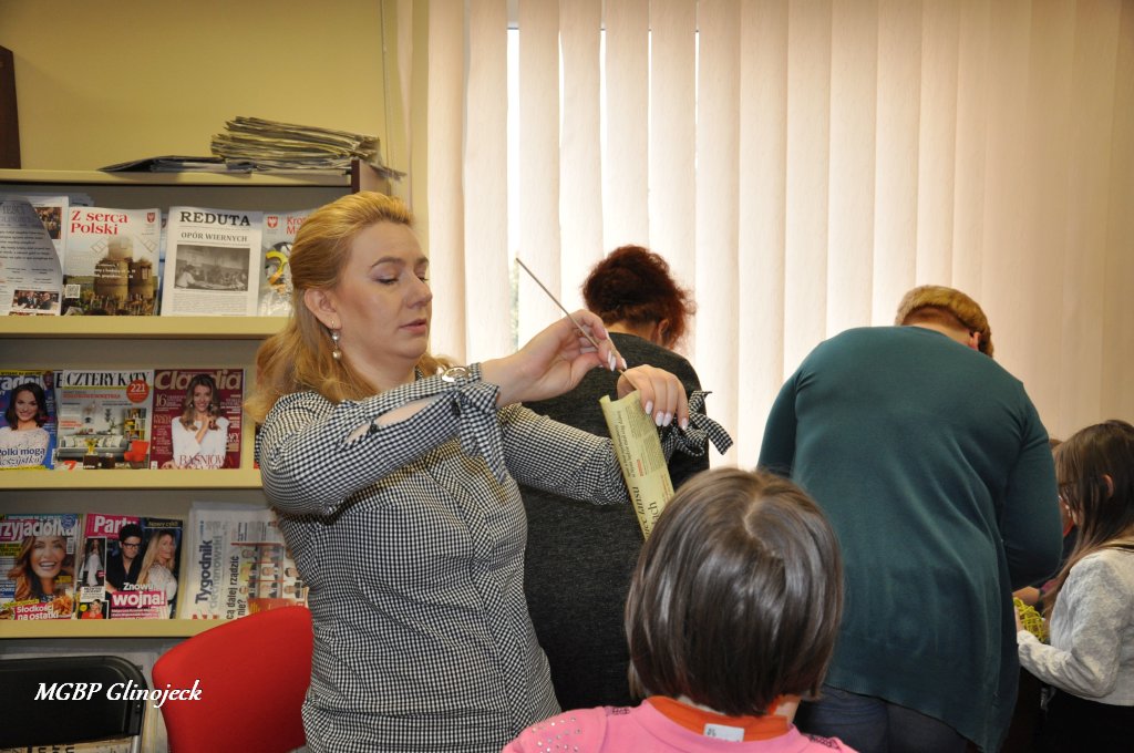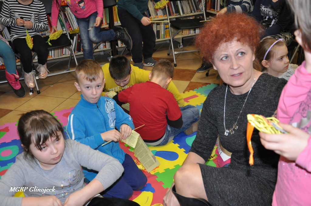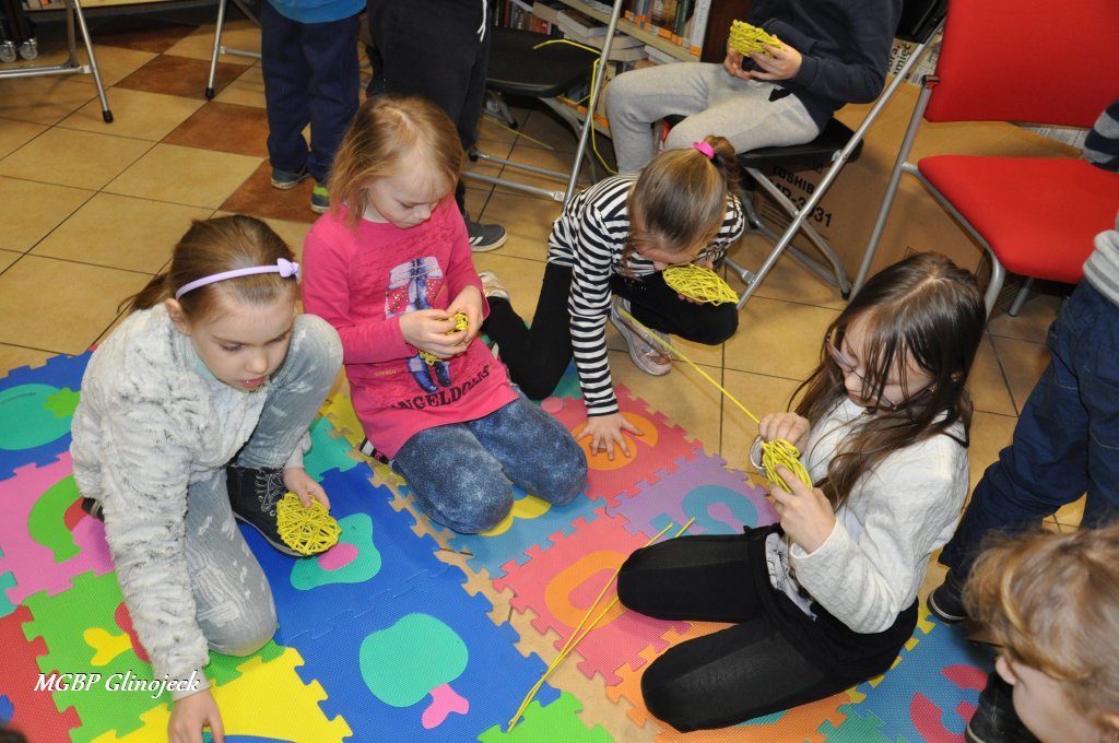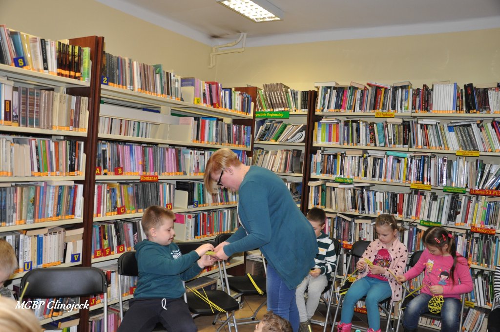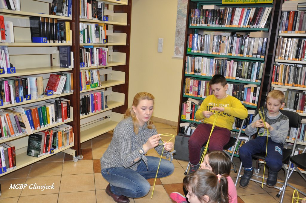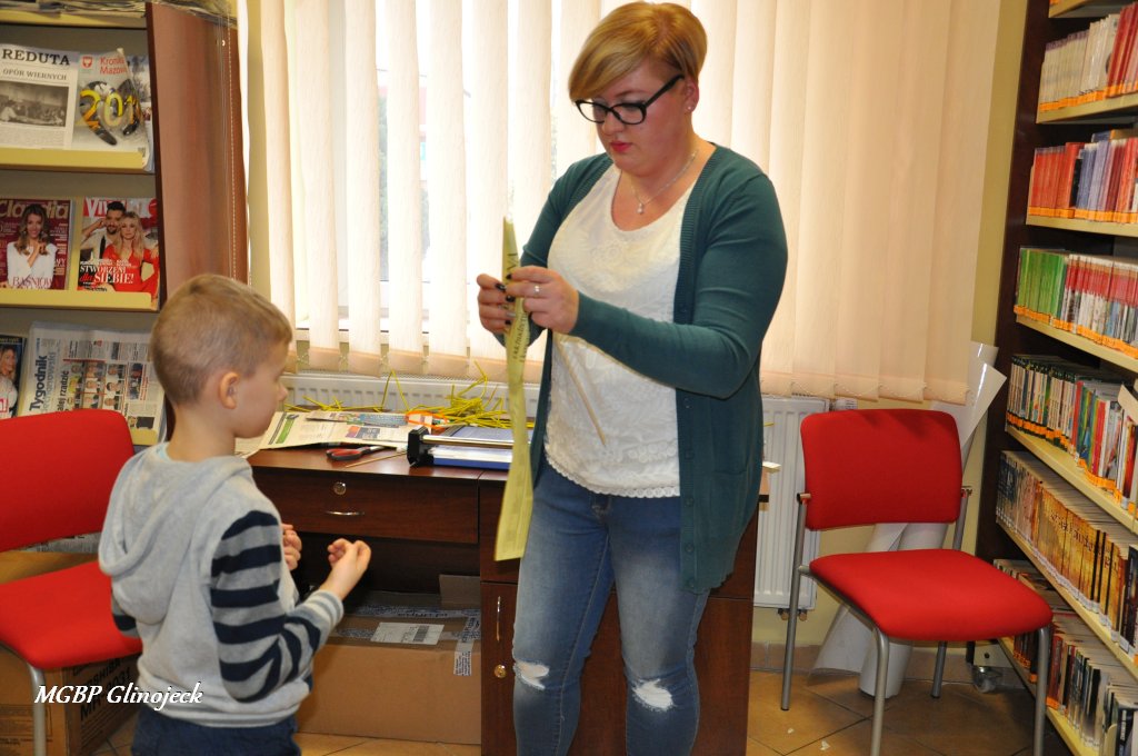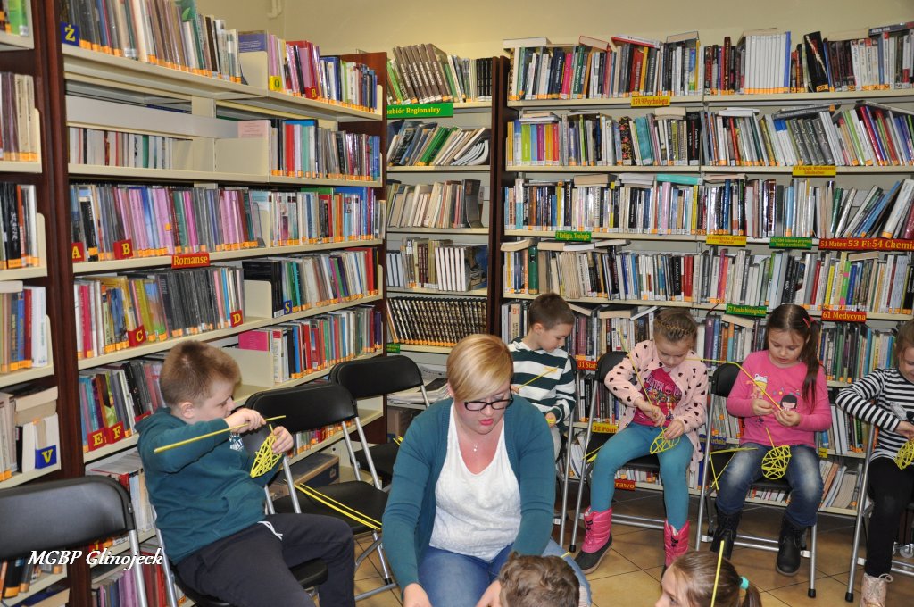 23 marca 2018 r. w Miejsko-Gminnej Bibliotece Publicznej w Glinojecku odbyły się warsztaty z wikliny papierowej. Pierwszoklasiści pod okiem pracowników biblioteki i wychowawczyni klasy, wyplatały piękne Wielkanocne jajka. Następnie zdobiły je wstążkami i świątecznymi ozdobami.