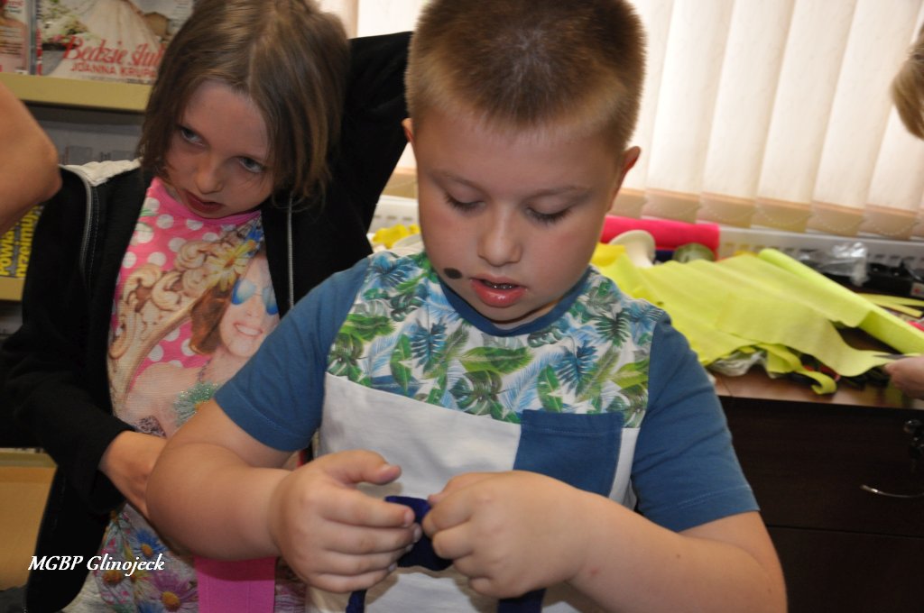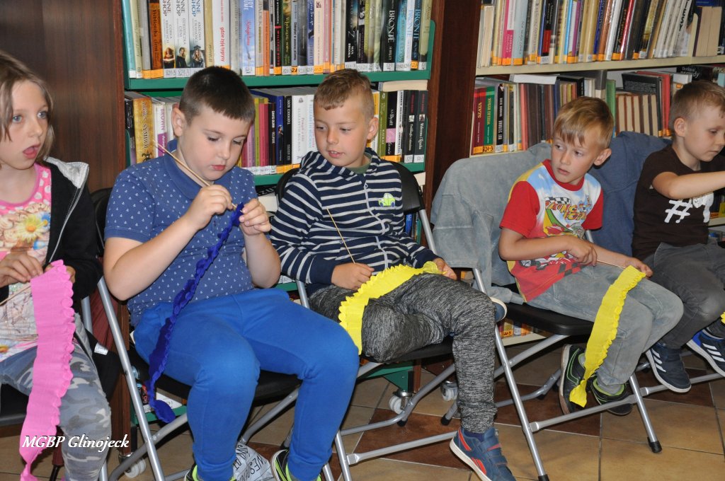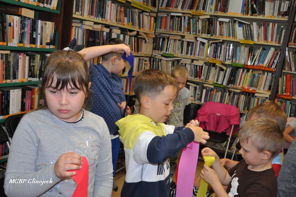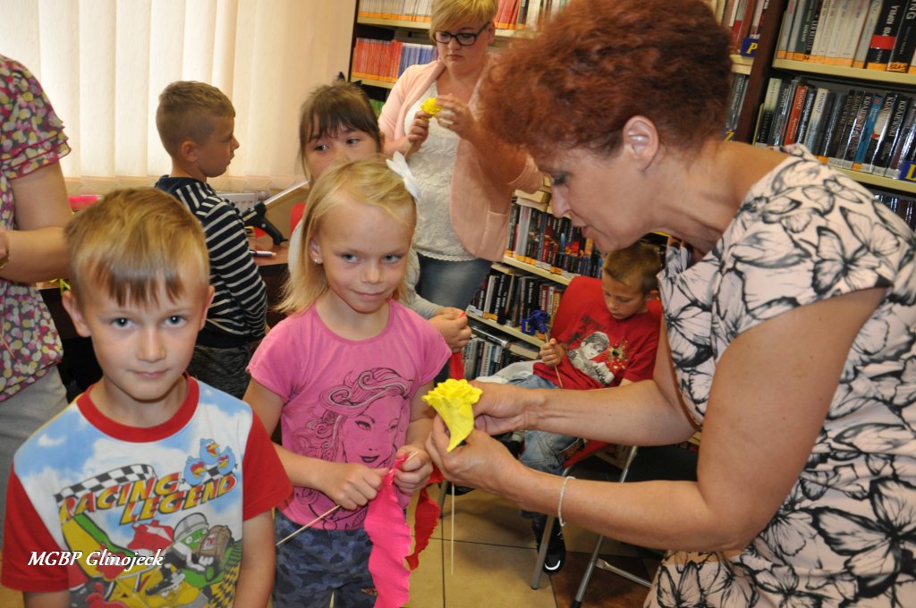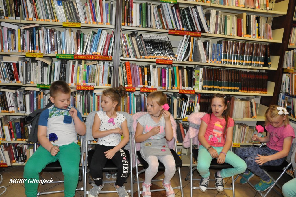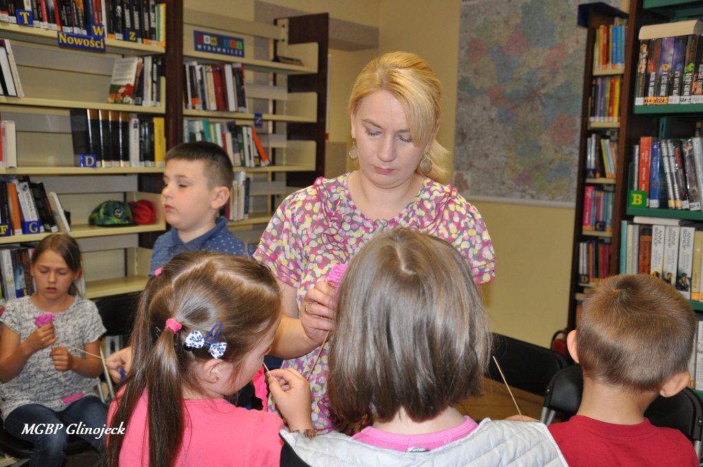 18 maja 2018 r. Miejsko-Gminną Bibliotekę Publiczną w Glinojecku odwiedzili uczniowie kl. I a Szkoły Podstawowej w Glinojecku wraz z wychowawcą Panią Bożeną Więckowską. Pierwszoklasiści mieli za zadanie wykonać podarunek dla swojej Mamy z okazji zbliżającego się jej święta. Dzieci swoje dzieła wykonywały pod okiem bibliotekarek.