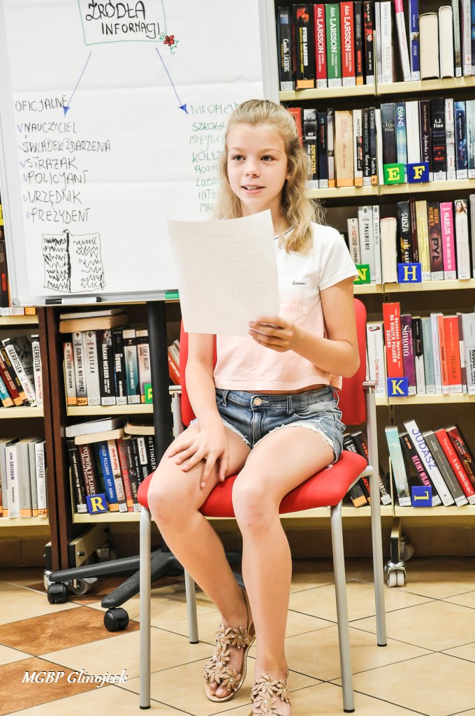 Pierwszym letnim spotkaniem zorganizowanym przez MGBP był warsztat dziennikarski, podczas którego uczestnicy dowiedzieli się skąd czerpać niezbędne do zbudowania artykułu informacje, jak sprawdzać ich źródło oraz w jaki sposób napisać krótką notatkę prasową. Do ostatniego zadania posłużyła tajemnicza, pełna zagadek historia, którą należało wyjaśnić, a potem (po napisaniu notatki) przedstawić „na wizji", jako wiadomość z ostatniej chwili.
