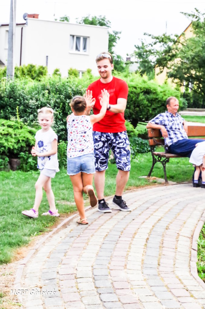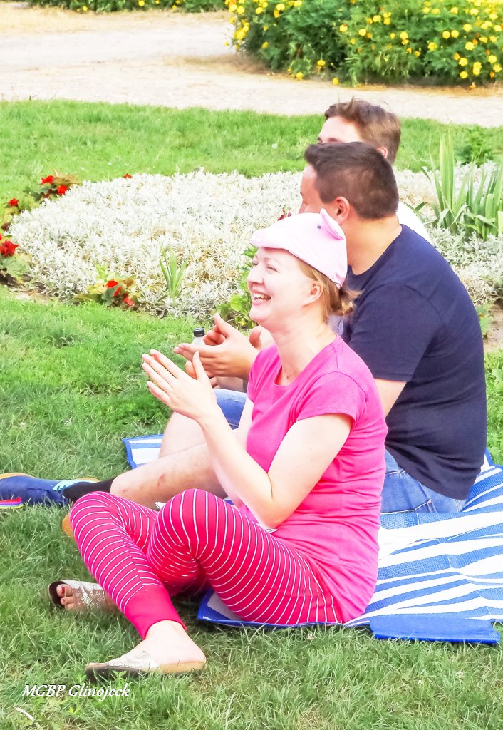Ostatniego dnia, w zeszły piątek odbyły się ostatnie warsztaty. Tym razem z zakresu teatru improwizacji. Ze względu na ich wielopokoleniowy charakter, uczestniczyli w nich zarówno dorośli, jak i dzieci. Podczas spotkania poćwiczyć można było zarówno podstawowe zadania aktorskie, jak i koncentrację, koordynację oraz mimikę i plastykę ruchu, a wszystko w pełnej humoru atmosferze. Ukoronowaniem zajęć było wystawienie krótkiej etiudy improwizowanej, w której grali wszyscy – i mali, i duzi.