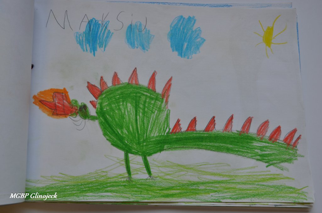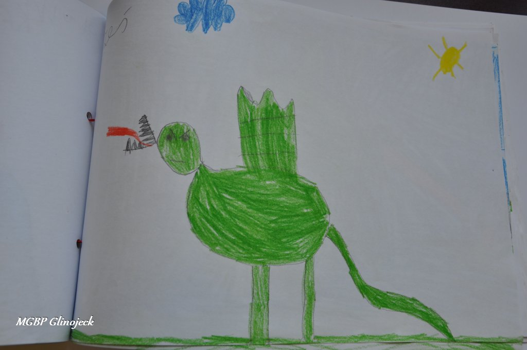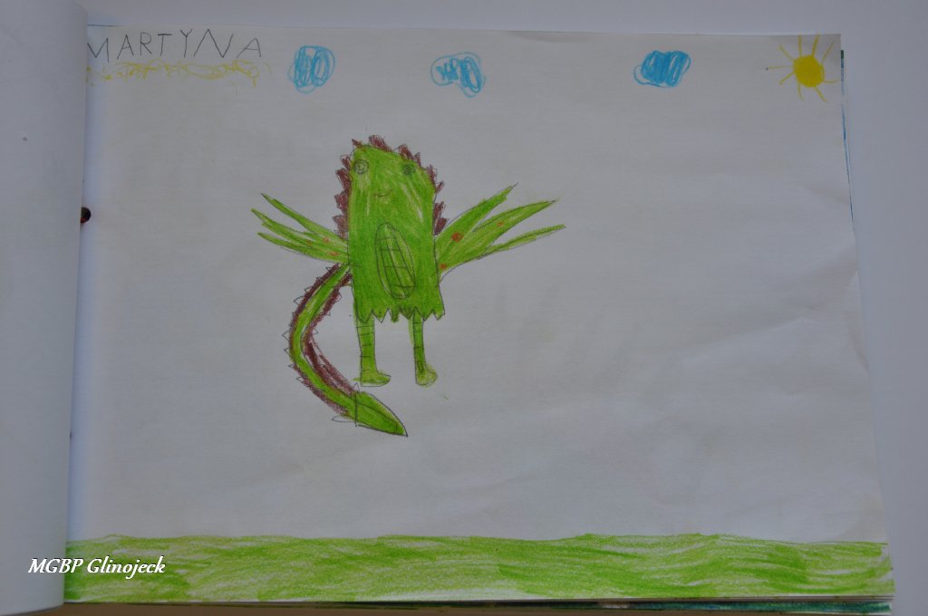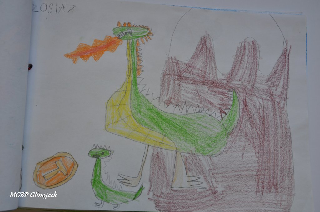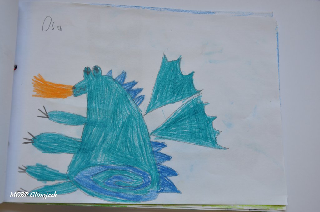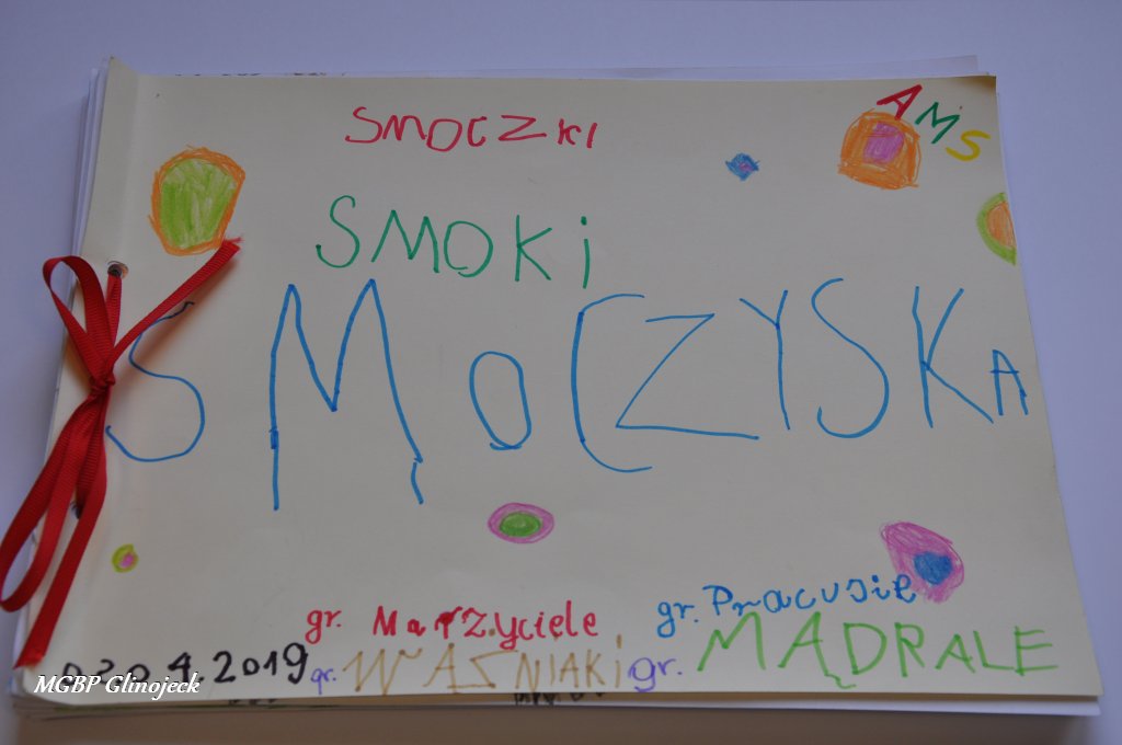 Zainspirowani legendą o Smoku Wawelskim kreatywne Smerfy z AMS, wykonały prace plastyczne przedstawiające: Smoczki, Smoki i Smoczyska. Przedszkolakom nie brakowało pomysłów i wyobraźni. Ze swoich rysunków stworzyły fantastyczną ilustrowaną smoczą książkę , którą przekazały do biblioteki. Dziękujemy za ten miły prezent.