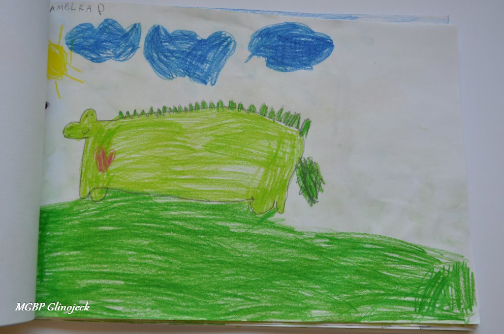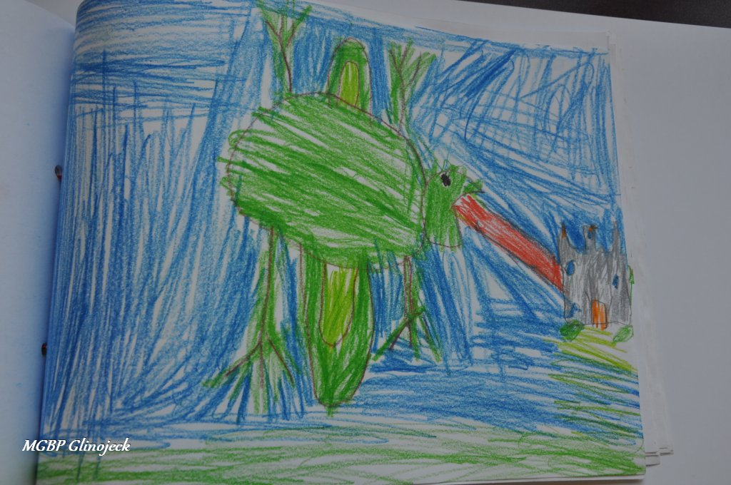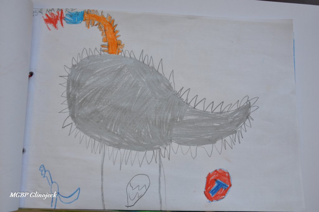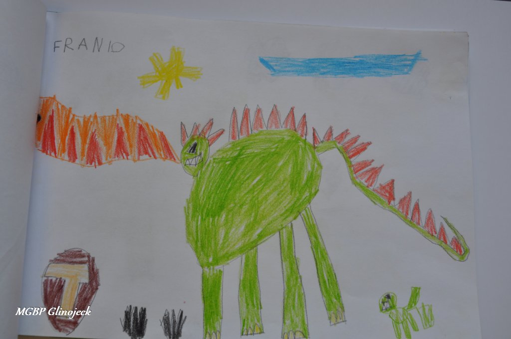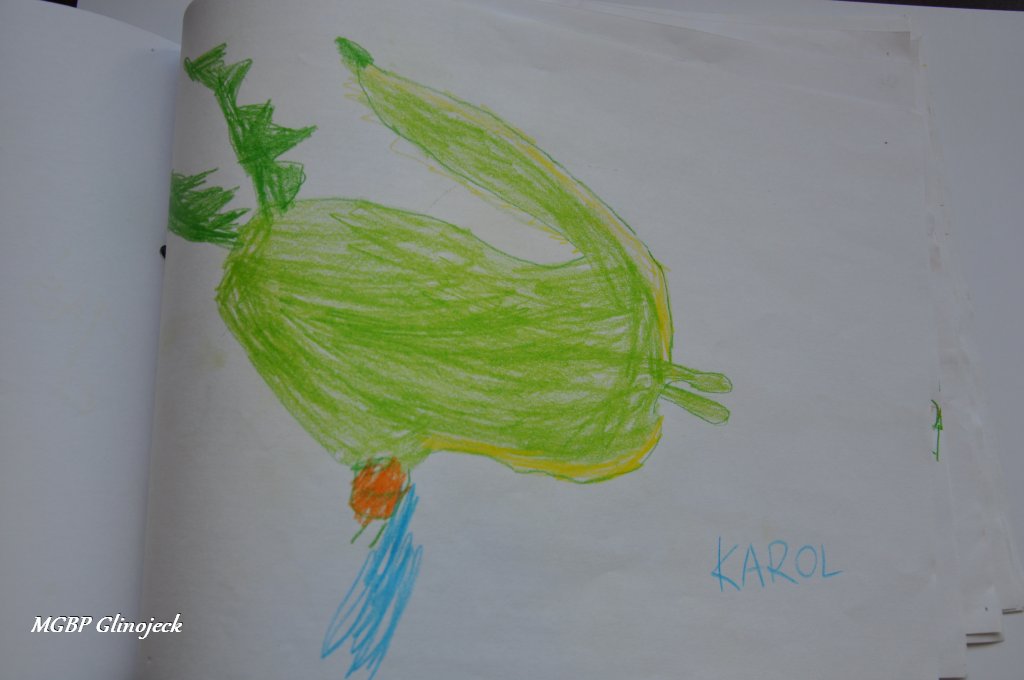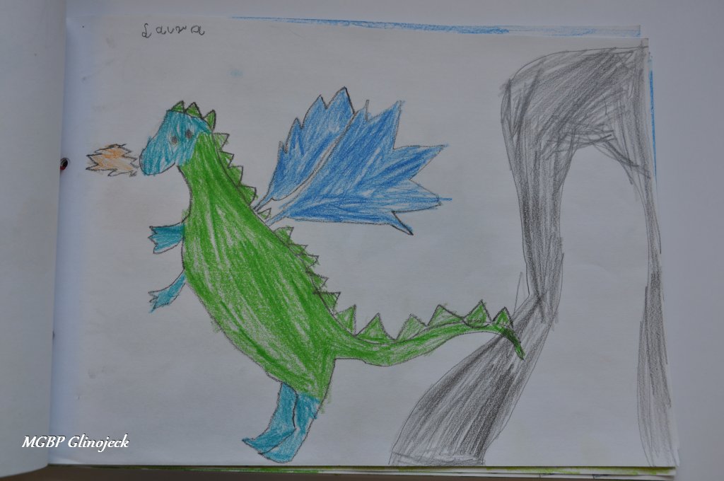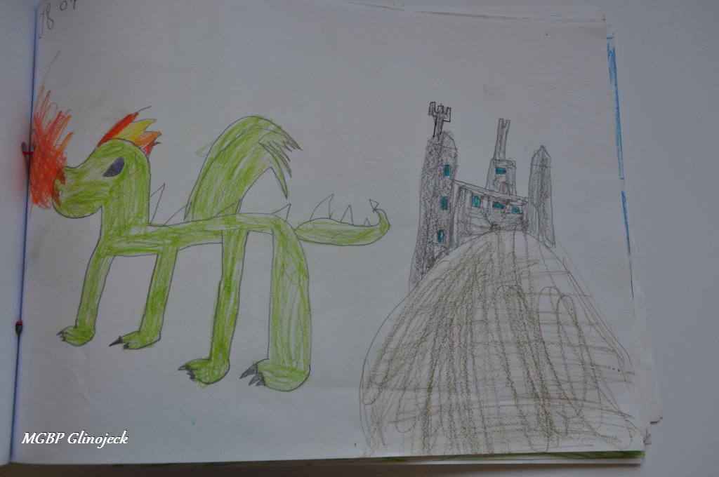 Zainspirowani legendą o Smoku Wawelskim kreatywne Smerfy z AMS, wykonały prace plastyczne przedstawiające: Smoczki, Smoki i Smoczyska. Przedszkolakom nie brakowało pomysłów i wyobraźni. Ze swoich rysunków stworzyły fantastyczną ilustrowaną smoczą książkę , którą przekazały do biblioteki. Dziękujemy za ten miły prezent.