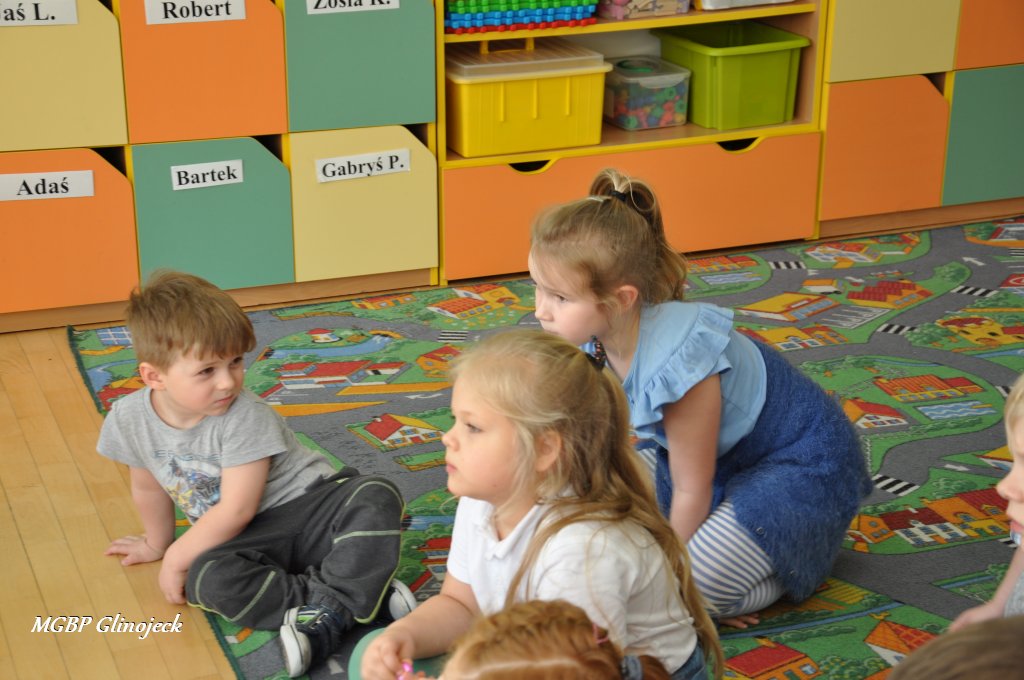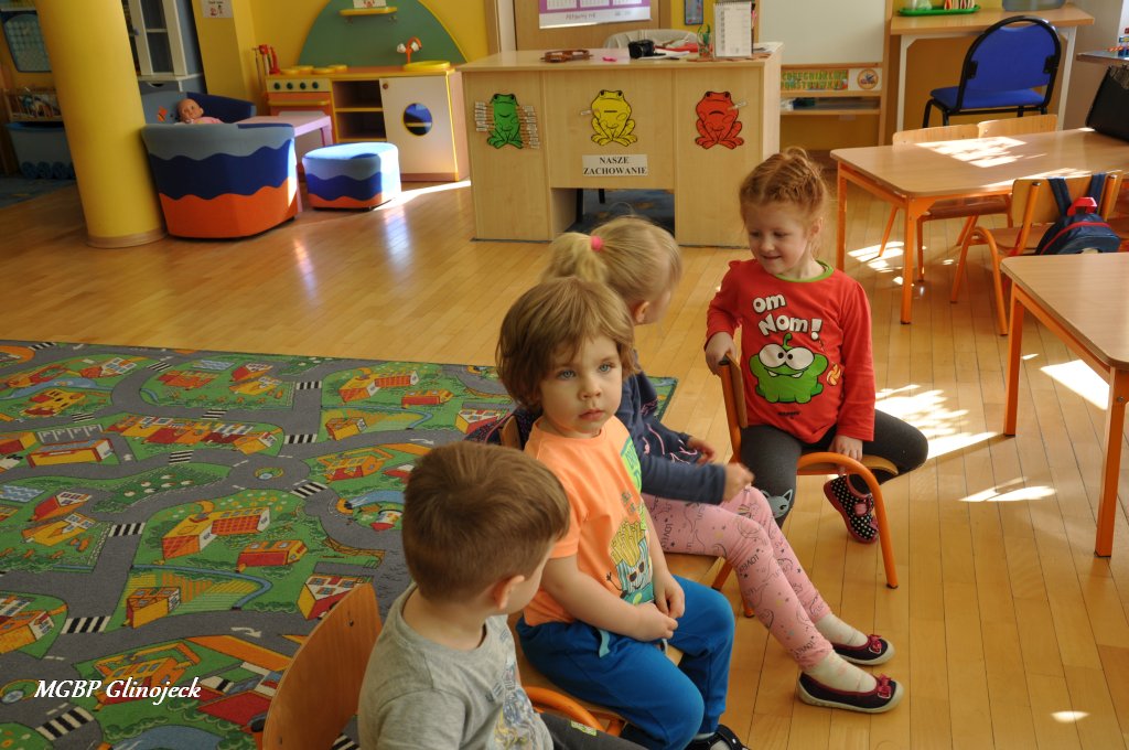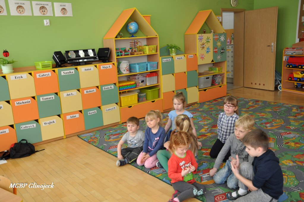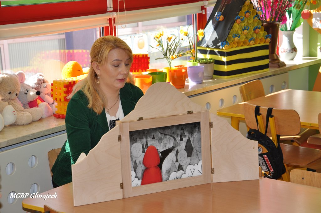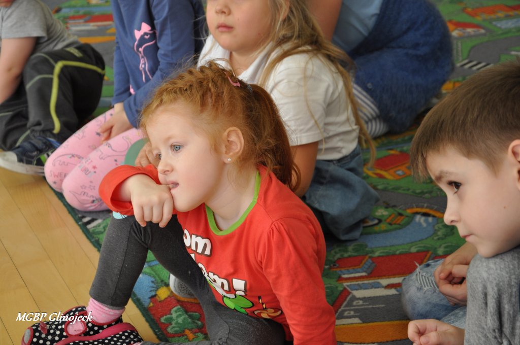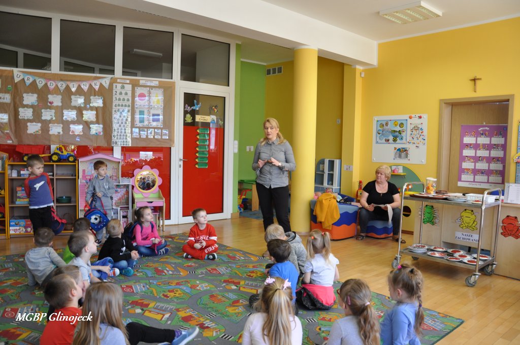 W Miejsko-Gminnym Przedszkolu w Glinojecku odbyły się trzy spotkania (22 marca, 26 marca, 2 kwietnia) podczas których dzieci wysłuchały bajki o „Czerwonym Kapturku", „Legendy o Smoku Wawelskim" oraz „Legendy o Skarbniku". W Ościsłowie odbyło się łącznie pięć lekcji bibliotecznych (26 marca oraz 4 kwietnia) oraz trzy lekcje dla przedszkolaków z Akademii Małego Smerfa (2 kwietnia). Podczas zajęć dzieci poznały magiczną skrzynkę kamishibai tzw. papierowy teatr obrazkowy. Jest to technika opowiadania, czytania wywodząca się z Japonii, wykorzystując plansze z obrazkami i tekstem oraz drewnianą lub kartonową skrzynkę (butai), - na wzór parawanu z teatrzyków marionetkowych – w której przedstawiane są kolejne fragmenty historii, bajki, opowiadania. Dzieci były bardzo zainteresowane nową formą czytania bajek, chętnie odpowiadały na pytania i brały udział w dyskusji. W formie dodatkowego zadania chętni uczestnicy zaprojektowali okładkę do wysłuchanych bajek.