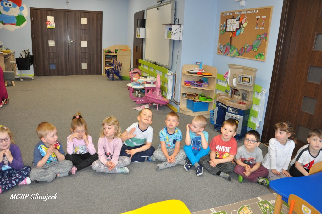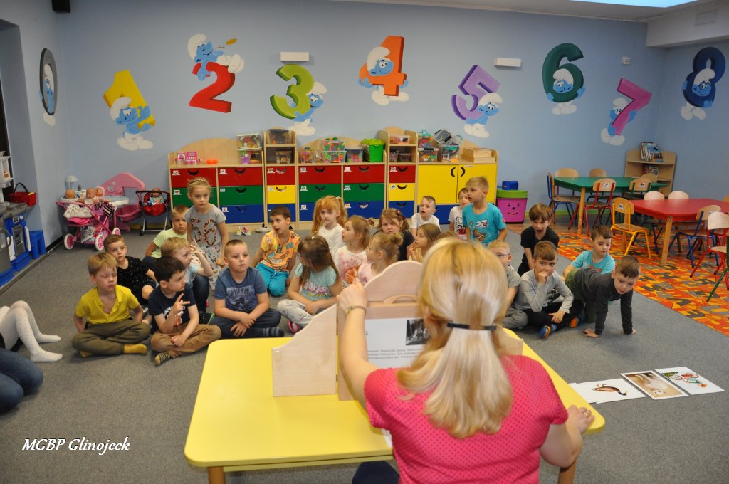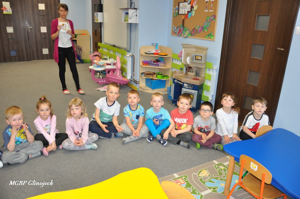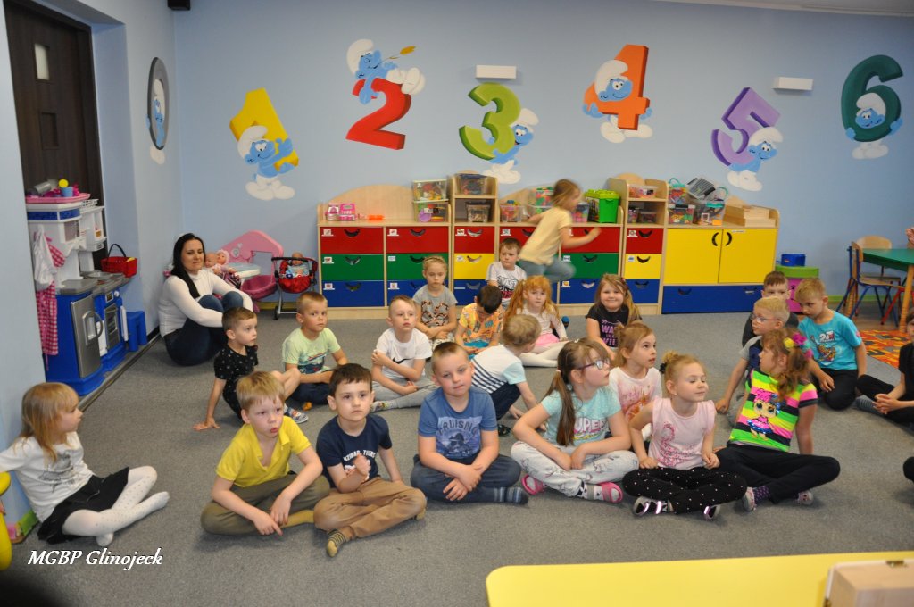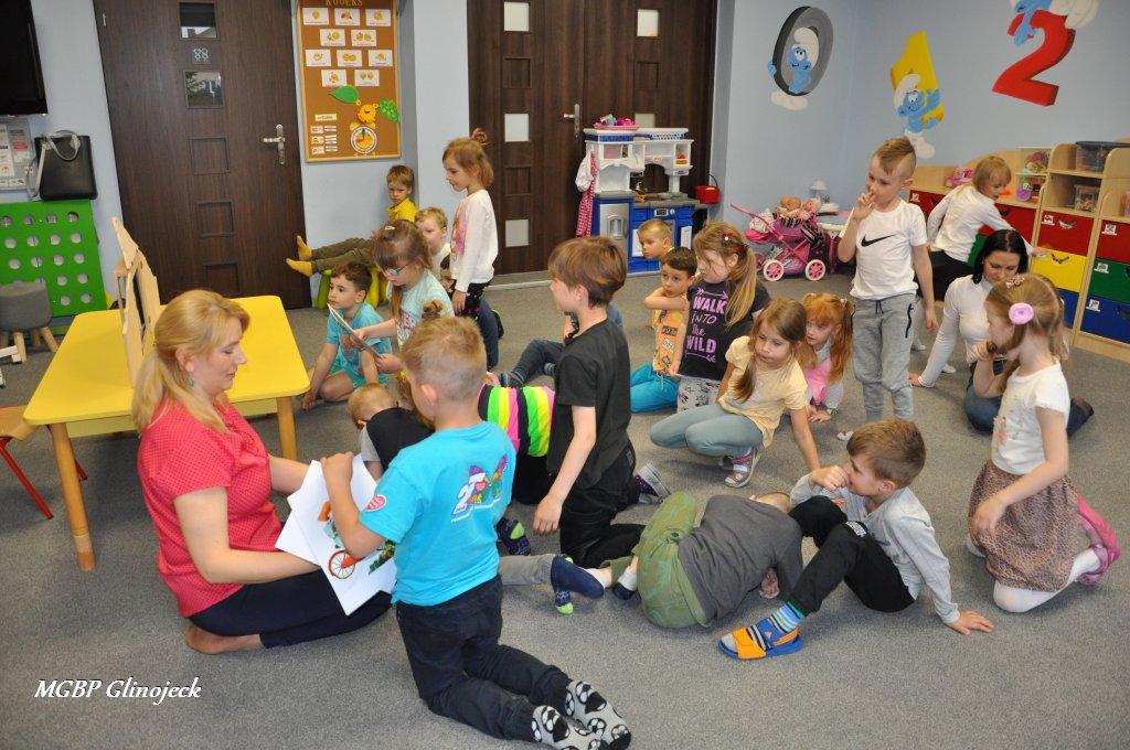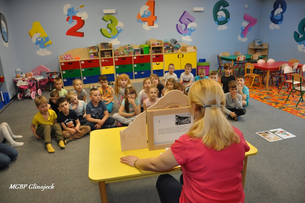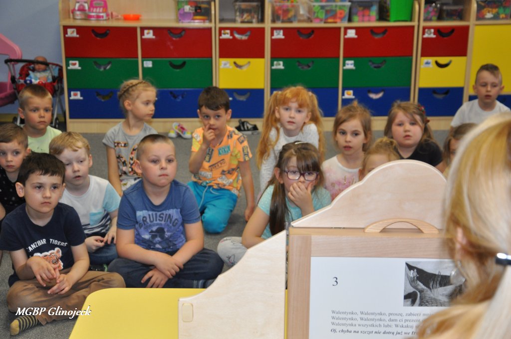 Tydzień Bibliotek w Miejsko-Gminnej Bibliotece Publicznej w Glinojecku owocował w spotkania czytelnicze z przedszkolakami. W dniach 13, 14 i 16 maja, bajki pt. „Rower Walentynki" wysłuchały dzieci z Miejsko-Gminnego Przedszkola w Glinojecku ( 7 grup: Motylki, Żabki, Jagódki, Mądre Sowy, Odkrywcy Tropiciele, Leśne Skrzaty). 15 maja podczas 3 spotkań z przygodą podróżniczą bohaterki zapoznały się dzieci z Akademii Małego Smerfa w Glinojecku (5 grup: Ważniaki, Mądrale, Pracusie, Marzyciele, Zgrywusy).