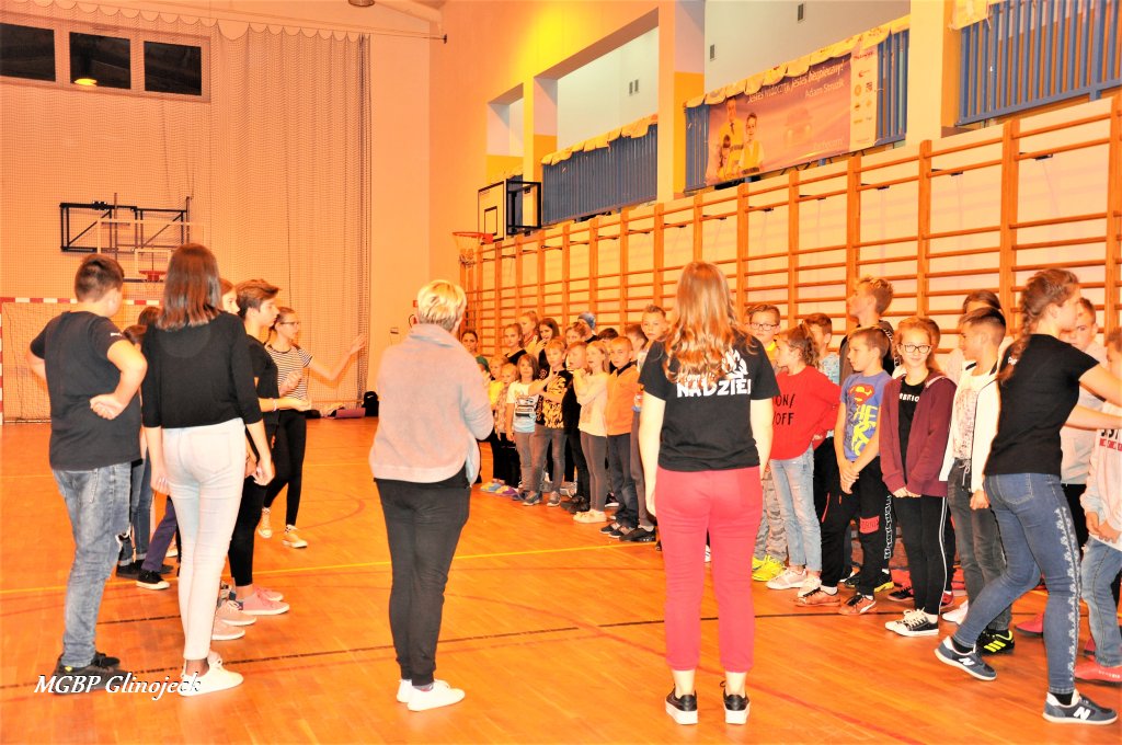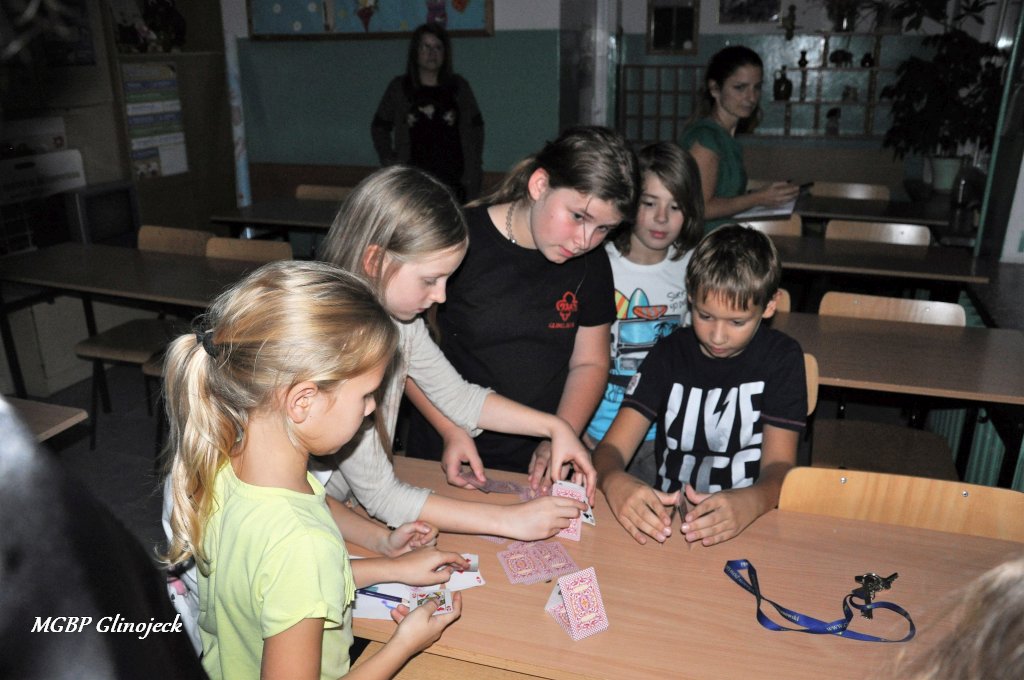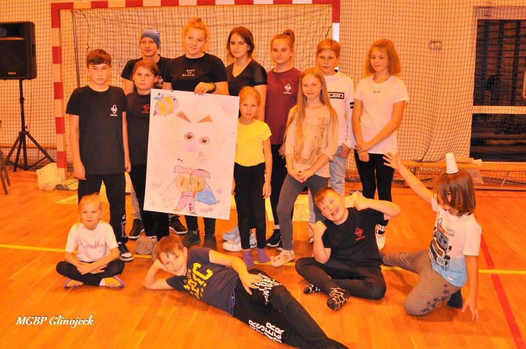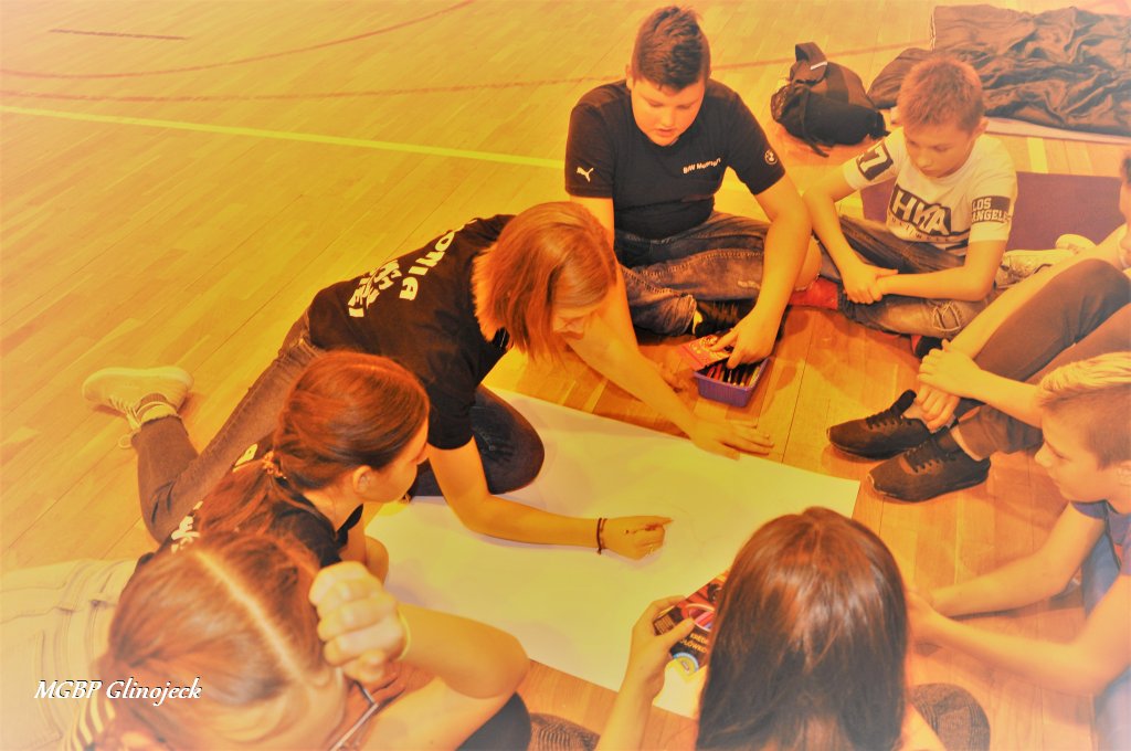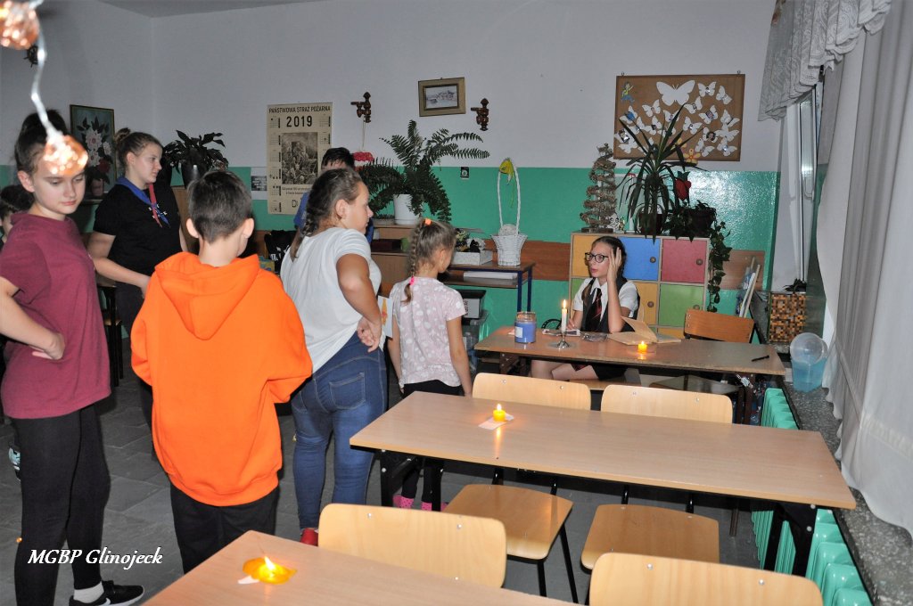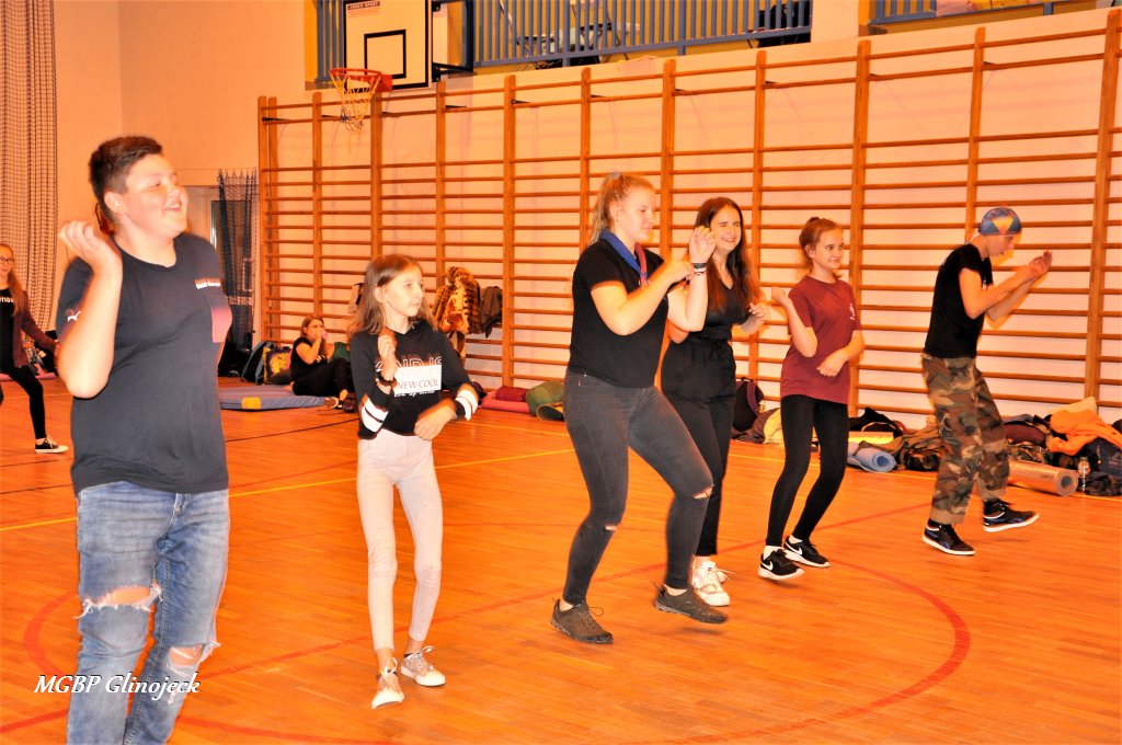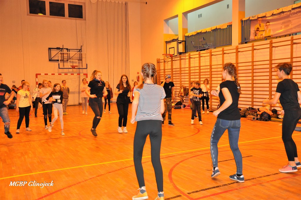 Kolejną atrakcją były zabawy ruchowe, które zapewnili druhowie z Glinojecka i Ościsłowa, porywając wszystkich do wspólnej zabawy. Nie zabrakło także gier planszowych tj.: 5 sekund, cluedo, monopoly junior i wielu innych oraz zabawy w komiks. Uczniowie podzieleni na cztery grupy mieli za zadanie stworzyć całkiem nowego bohatera bądź antybohatera komiksu. Musieli tylko uruchomić swoją fantazję. Powstały cztery świetne projekty i nowi bohaterowie, których potem młodzi twórcy musieli zaprezentować. O godz. 1.00 w nocy rozpoczęła się wyczekiwana przez wszystkich gra pt. „Magiczni bohaterowie książek", przygotowana przez harcerzy z Ościsłowa pod okiem drużynowej Pani Katarzyny Wachnik. Gra została opracowana na podstawie znanych bajek i powieści dla młodzieży. Odbywała się w 7 punktach rozmieszczonych po całej szkole. Było magicznie, kolorowo, momentami także upiornie. Nieco po północy, harcerze wcielili się w bajkowe i fantastyczne postacie, zaskakując uczestników zagadkami i zadaniami do wykonania. Po skończonej grze najwytrwalsi z najwytrwalszych obejrzeli film pt. „Ptyś i Bill".