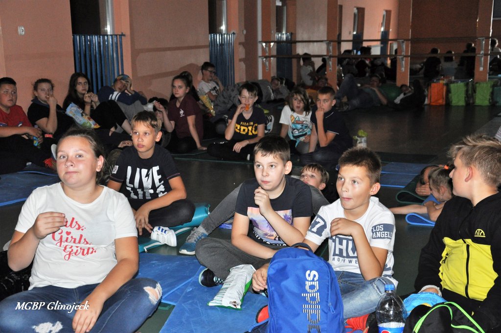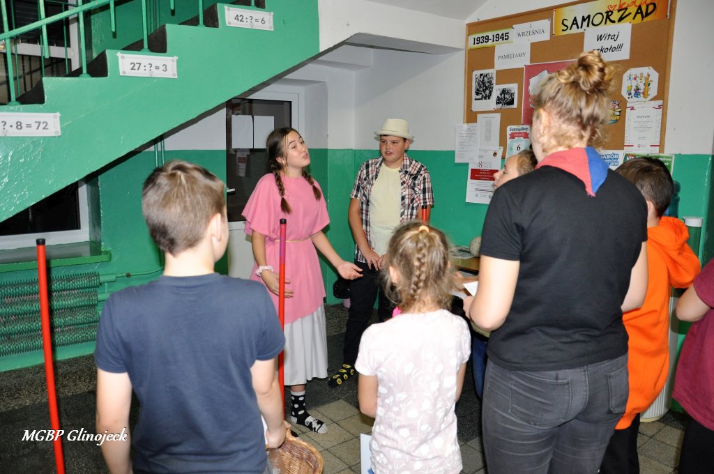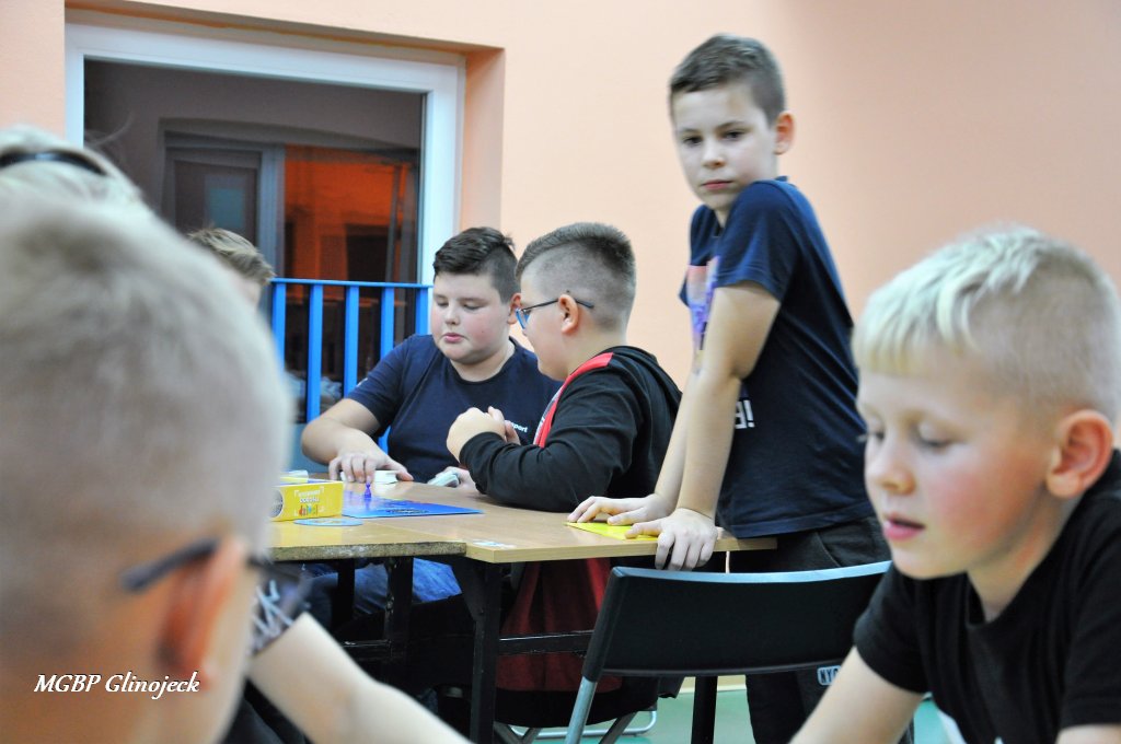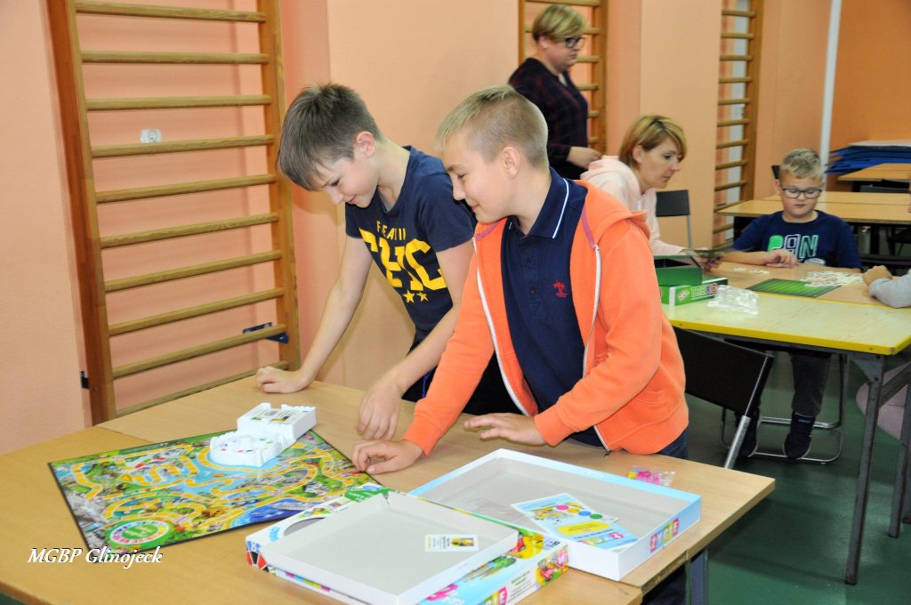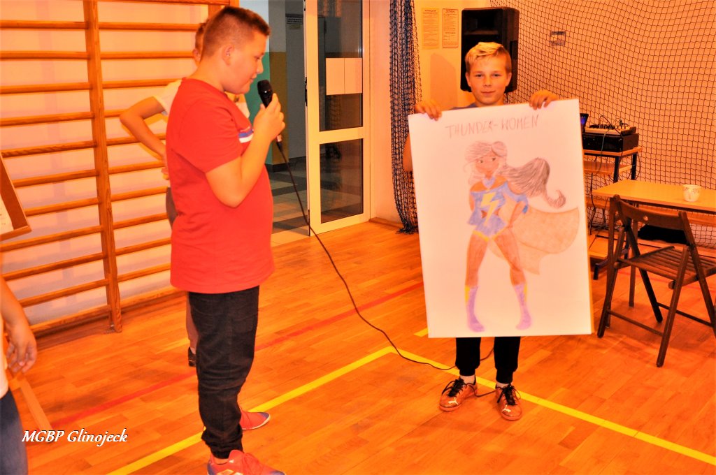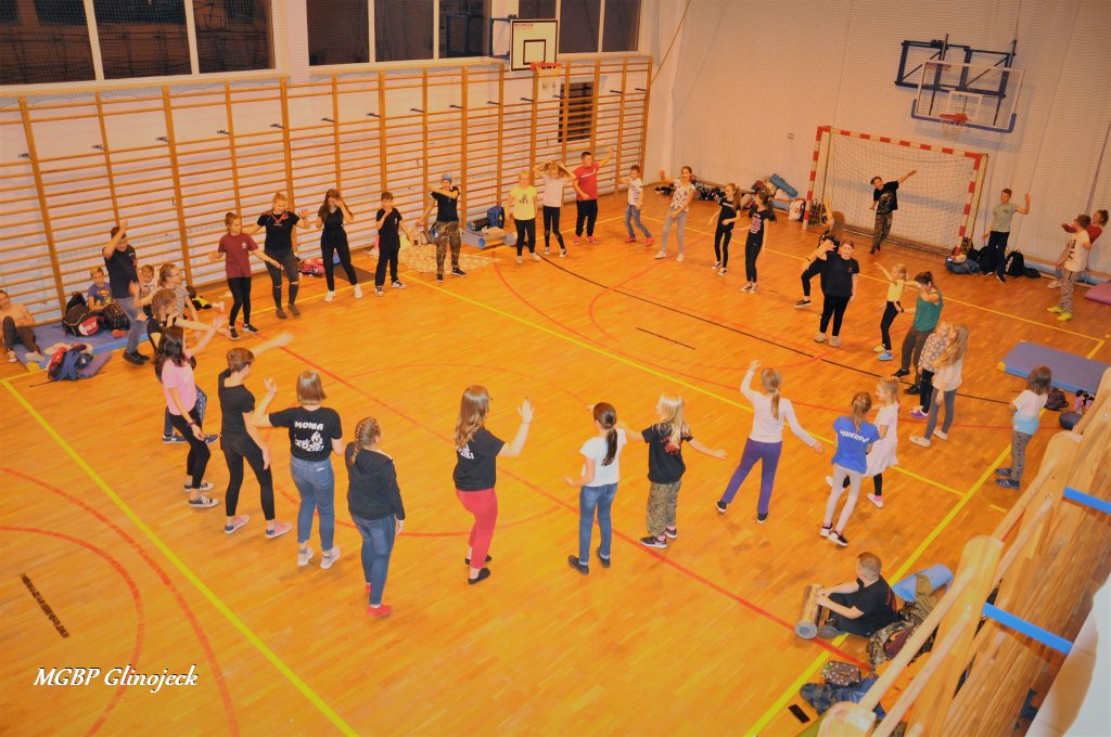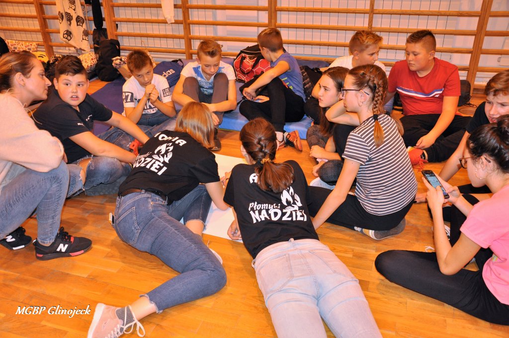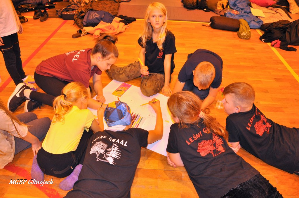 Kolejną atrakcją były zabawy ruchowe, które zapewnili druhowie z Glinojecka i Ościsłowa, porywając wszystkich do wspólnej zabawy. Nie zabrakło także gier planszowych tj.: 5 sekund, cluedo, monopoly junior i wielu innych oraz zabawy w komiks. Uczniowie podzieleni na cztery grupy mieli za zadanie stworzyć całkiem nowego bohatera bądź antybohatera komiksu. Musieli tylko uruchomić swoją fantazję. Powstały cztery świetne projekty i nowi bohaterowie, których potem młodzi twórcy musieli zaprezentować. O godz. 1.00 w nocy rozpoczęła się wyczekiwana przez wszystkich gra pt. „Magiczni bohaterowie książek", przygotowana przez harcerzy z Ościsłowa pod okiem drużynowej Pani Katarzyny Wachnik. Gra została opracowana na podstawie znanych bajek i powieści dla młodzieży. Odbywała się w 7 punktach rozmieszczonych po całej szkole. Było magicznie, kolorowo, momentami także upiornie. Nieco po północy, harcerze wcielili się w bajkowe i fantastyczne postacie, zaskakując uczestników zagadkami i zadaniami do wykonania. Po skończonej grze najwytrwalsi z najwytrwalszych obejrzeli film pt. „Ptyś i Bill".