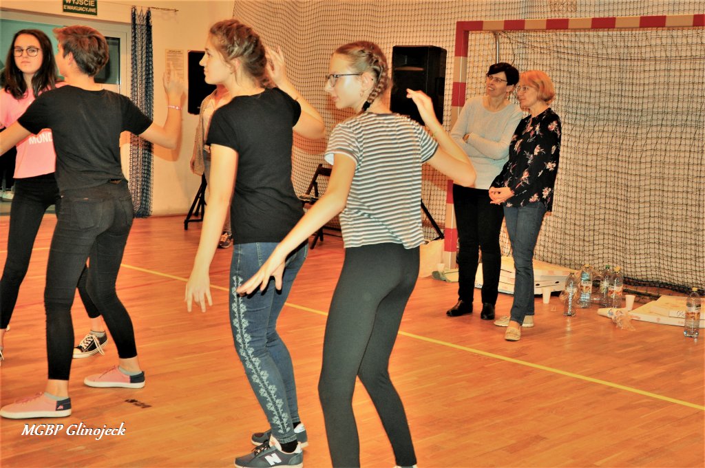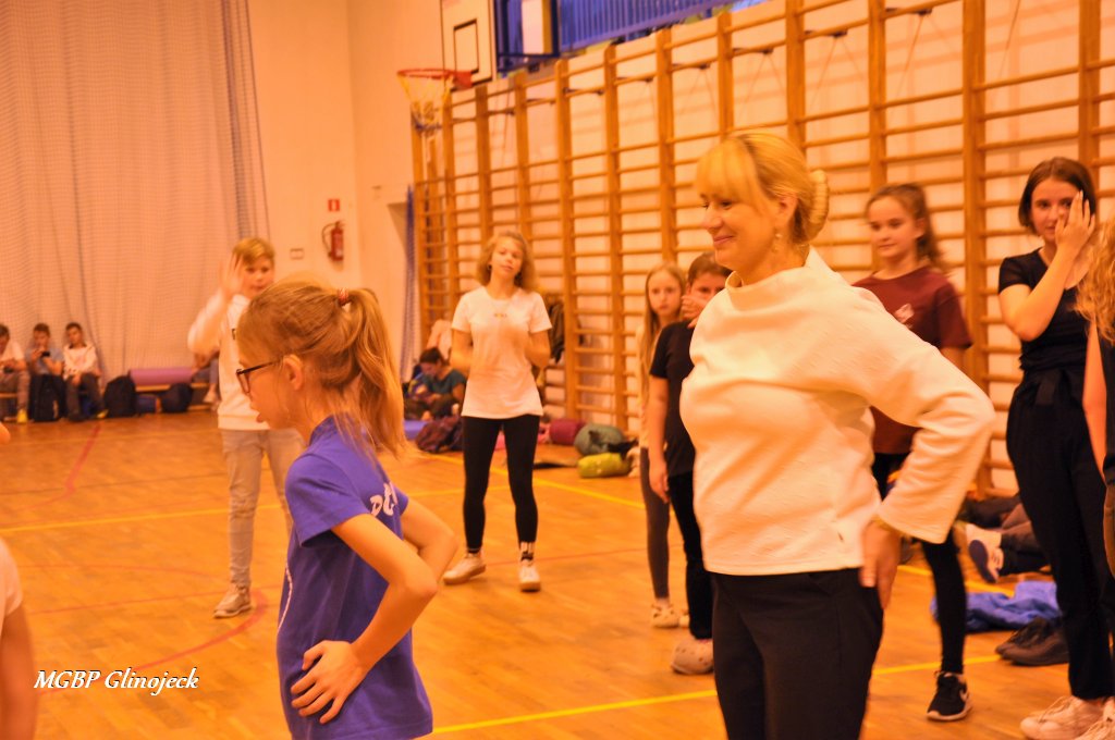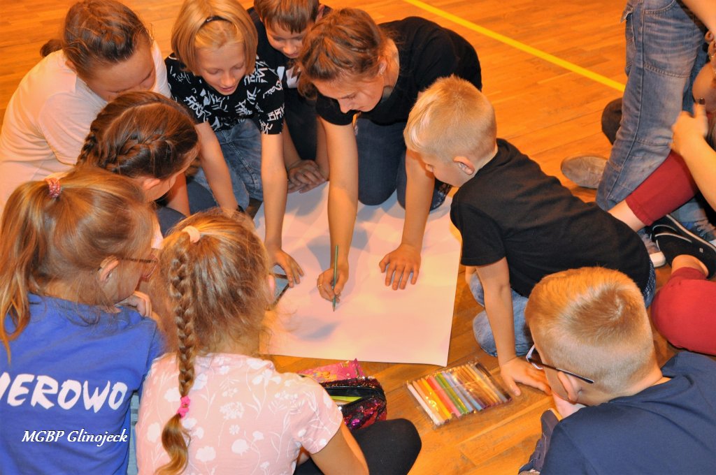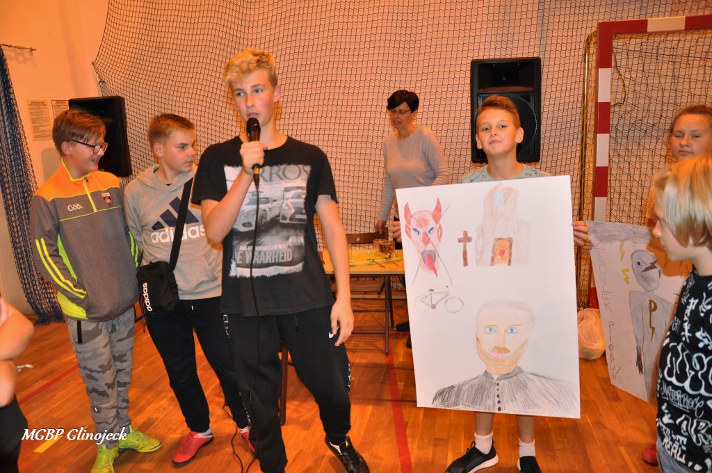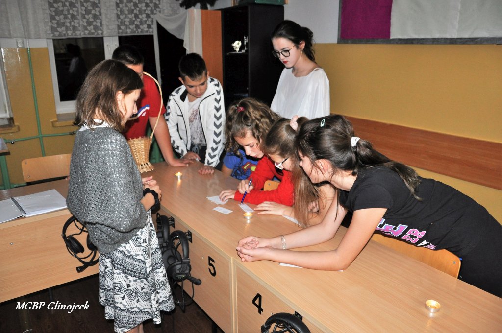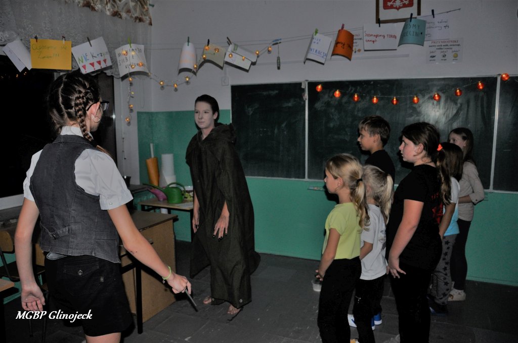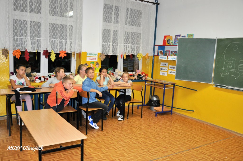 Kolejną atrakcją były zabawy ruchowe, które zapewnili druhowie z Glinojecka i Ościsłowa, porywając wszystkich do wspólnej zabawy. Nie zabrakło także gier planszowych tj.: 5 sekund, cluedo, monopoly junior i wielu innych oraz zabawy w komiks. Uczniowie podzieleni na cztery grupy mieli za zadanie stworzyć całkiem nowego bohatera bądź antybohatera komiksu. Musieli tylko uruchomić swoją fantazję. Powstały cztery świetne projekty i nowi bohaterowie, których potem młodzi twórcy musieli zaprezentować. O godz. 1.00 w nocy rozpoczęła się wyczekiwana przez wszystkich gra pt. „Magiczni bohaterowie książek", przygotowana przez harcerzy z Ościsłowa pod okiem drużynowej Pani Katarzyny Wachnik. Gra została opracowana na podstawie znanych bajek i powieści dla młodzieży. Odbywała się w 7 punktach rozmieszczonych po całej szkole. Było magicznie, kolorowo, momentami także upiornie. Nieco po północy, harcerze wcielili się w bajkowe i fantastyczne postacie, zaskakując uczestników zagadkami i zadaniami do wykonania. Po skończonej grze najwytrwalsi z najwytrwalszych obejrzeli film pt. „Ptyś i Bill".
