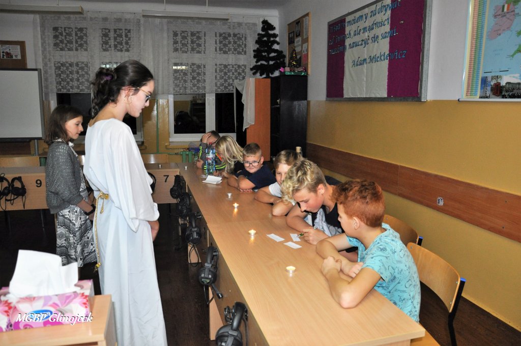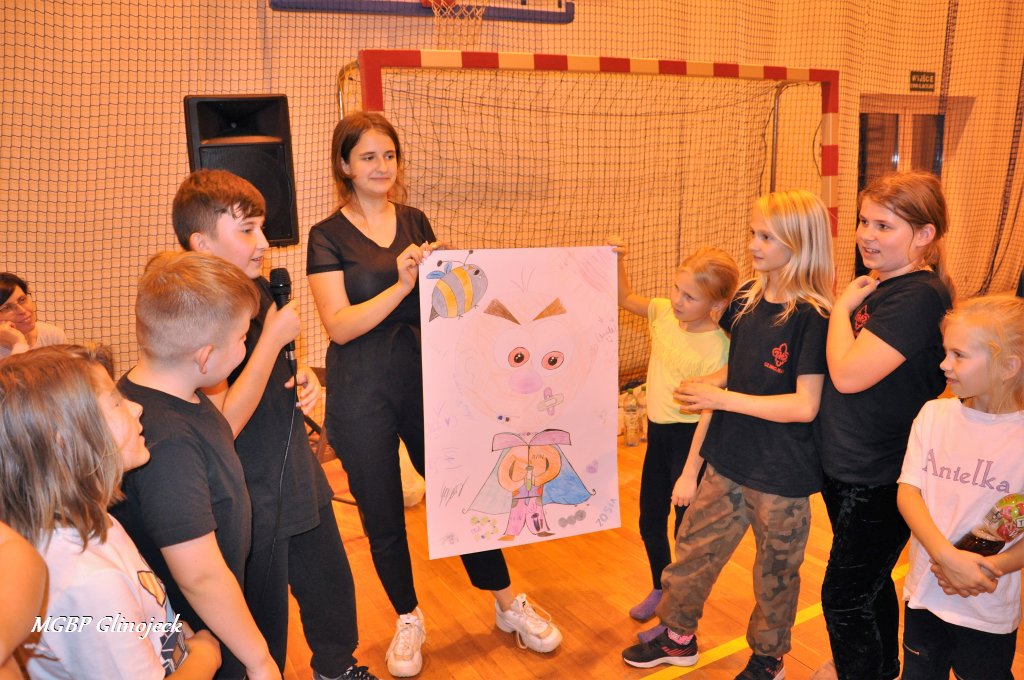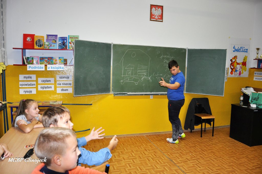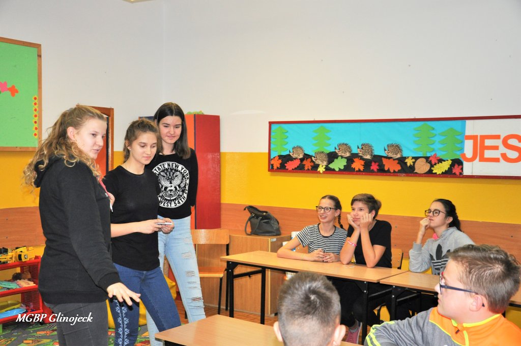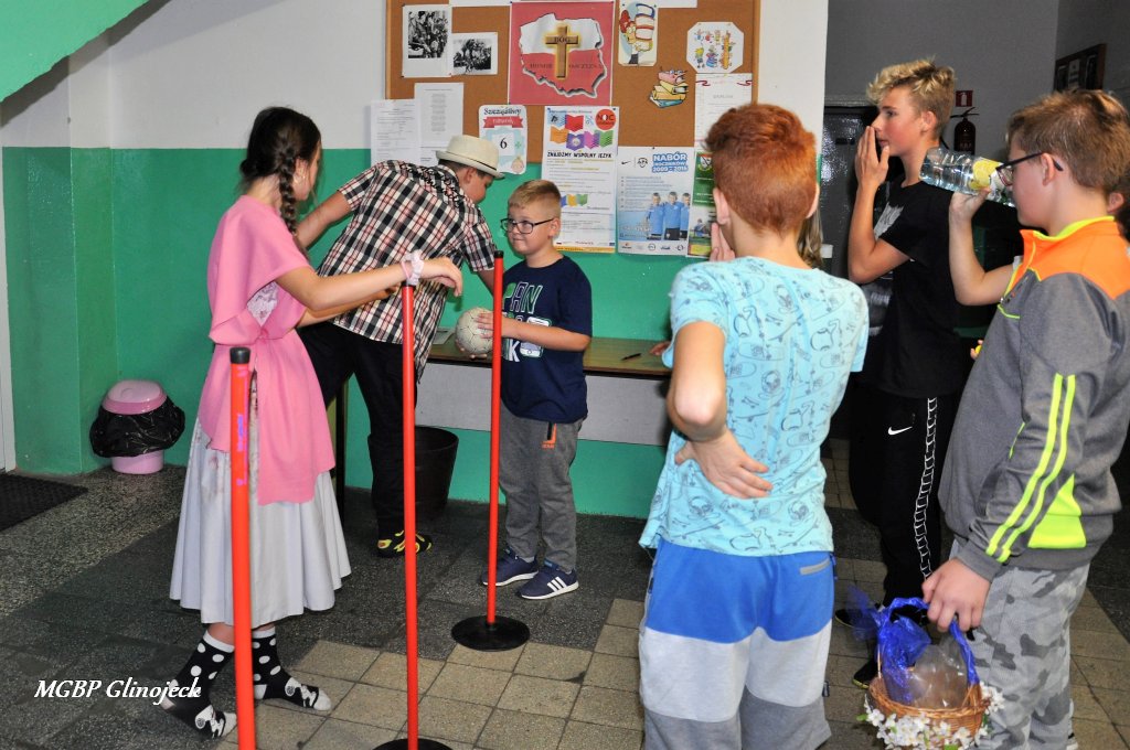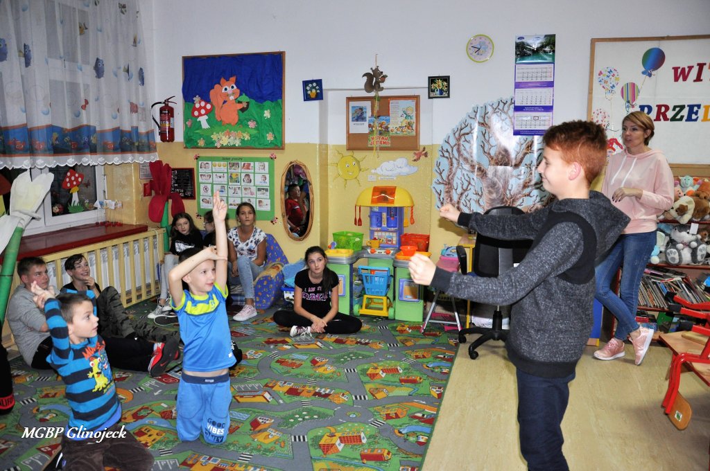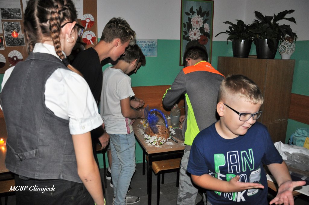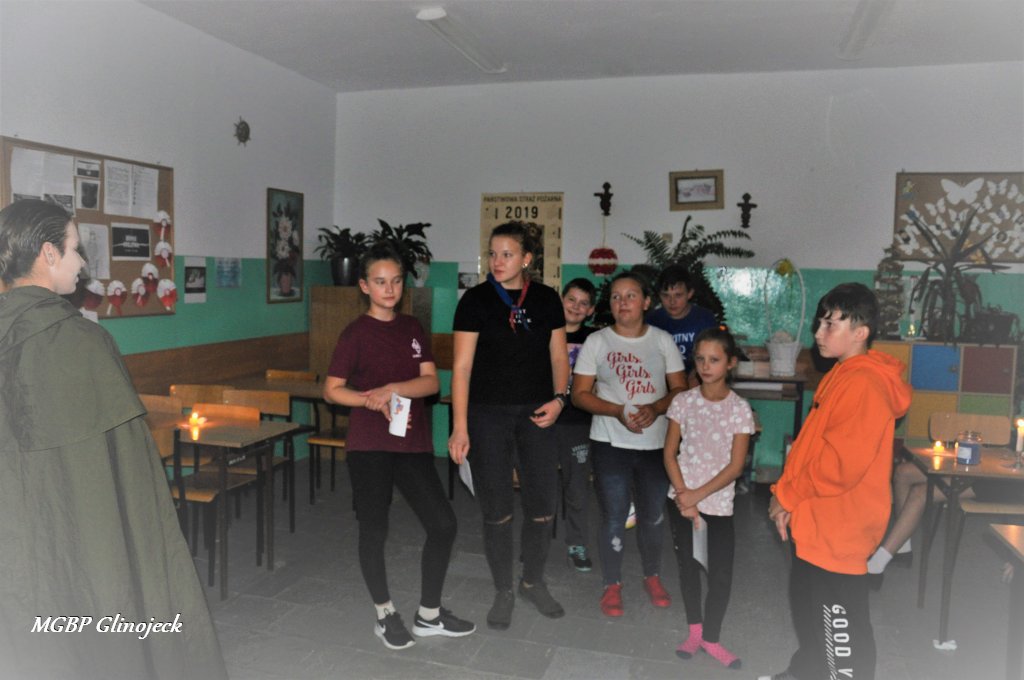 Kolejną atrakcją były zabawy ruchowe, które zapewnili druhowie z Glinojecka i Ościsłowa, porywając wszystkich do wspólnej zabawy. Nie zabrakło także gier planszowych tj.: 5 sekund, cluedo, monopoly junior i wielu innych oraz zabawy w komiks. Uczniowie podzieleni na cztery grupy mieli za zadanie stworzyć całkiem nowego bohatera bądź antybohatera komiksu. Musieli tylko uruchomić swoją fantazję. Powstały cztery świetne projekty i nowi bohaterowie, których potem młodzi twórcy musieli zaprezentować. O godz. 1.00 w nocy rozpoczęła się wyczekiwana przez wszystkich gra pt. „Magiczni bohaterowie książek", przygotowana przez harcerzy z Ościsłowa pod okiem drużynowej Pani Katarzyny Wachnik. Gra została opracowana na podstawie znanych bajek i powieści dla młodzieży. Odbywała się w 7 punktach rozmieszczonych po całej szkole. Było magicznie, kolorowo, momentami także upiornie. Nieco po północy, harcerze wcielili się w bajkowe i fantastyczne postacie, zaskakując uczestników zagadkami i zadaniami do wykonania. Po skończonej grze najwytrwalsi z najwytrwalszych obejrzeli film pt. „Ptyś i Bill".