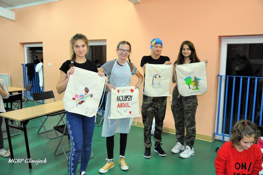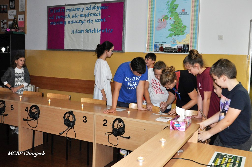 W gminie Glinojeck akcja odbyła się z 4 na 5 października. Uczestnicy wydarzenia wraz z organizatorami imprezy: Miejsko-Gminną Biblioteką Publiczną w Glinojecku, Filią biblioteczną w Ościsłowie, Szkołą Podstawową w Ościsłowie, świętowali Noc Bibliotek całą noc w godz. od 18.00 do 6.00 rano. Napięty program akcji nie pozwolił zmrużyć oka. Pierwszym punktem wydarzenia były warsztaty plastyczne „Zmaluj COŚ z lt's my T-shirt!" z Panią Emilią Madej, podczas których uczniowie malowali farbami do tkanin pamiątkowe workoplecaki. Równolegle odbywały się gry: Kalambury i Milionerzy.