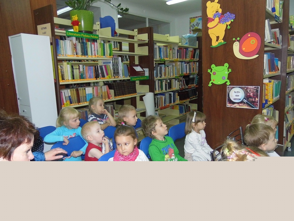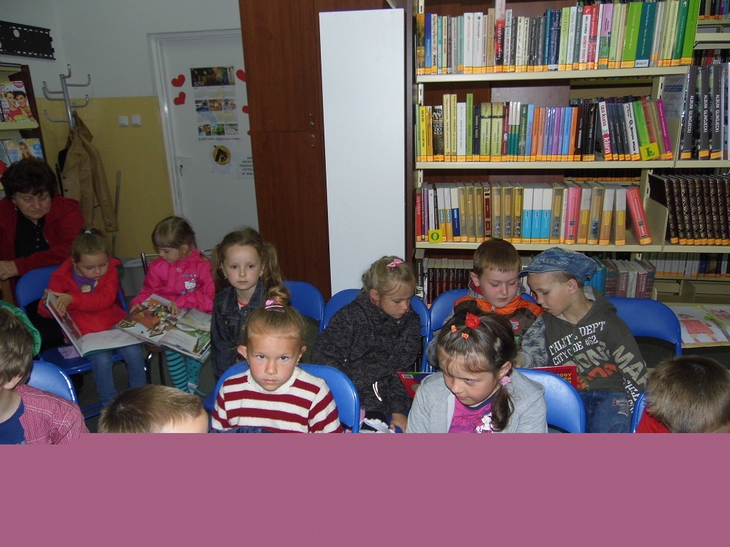 Pokaz bajek rozpoczął się od przedstawienia krótkiej historii wieczorynek, począwszy od metamorfozy wizualnej i graficznej, a także zmiany godzin i programów transmisji, przez pogawędkę dzieci i bibliotekarza na temat ulubionych bajek oglądanych przez przedszkolaków.Każdy z nich miał możliwość wypowiedzenia się na temat swojej ulubionej wieczorynki. Kolejnym etapem lekcji była prezentacja poszczególnych dobranocek emitowanych na kanale TVP 1. Podczas pokazu dziecom rozdano książki do prezentowanych bajek. Następnie przedszkolaki odgadywały znane wieczorynki oraz wymieniały postacie w nich występuujące. Na koniec miały możliwość obejrzenia humorystycznej bajki "Wilk i zając".