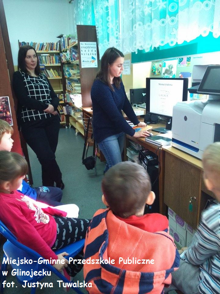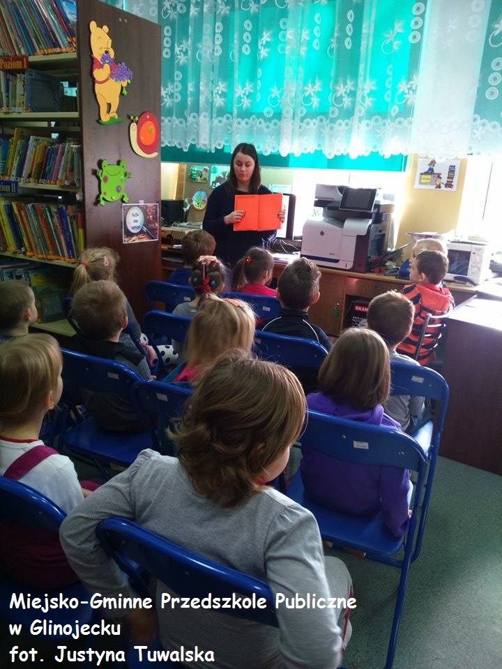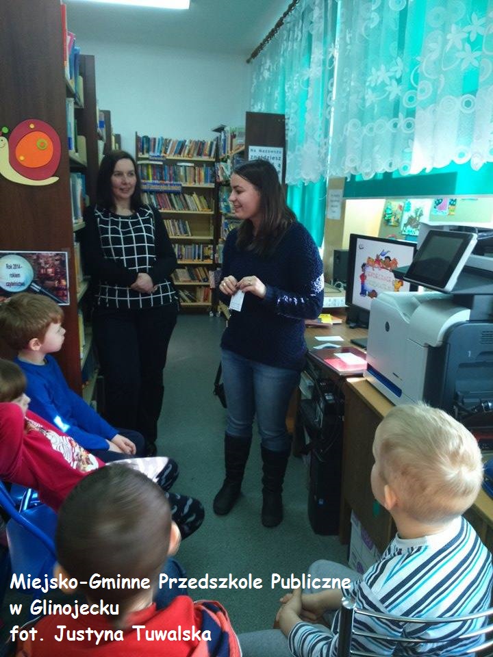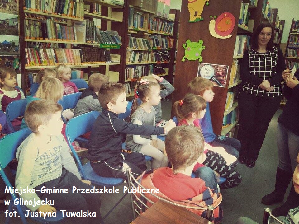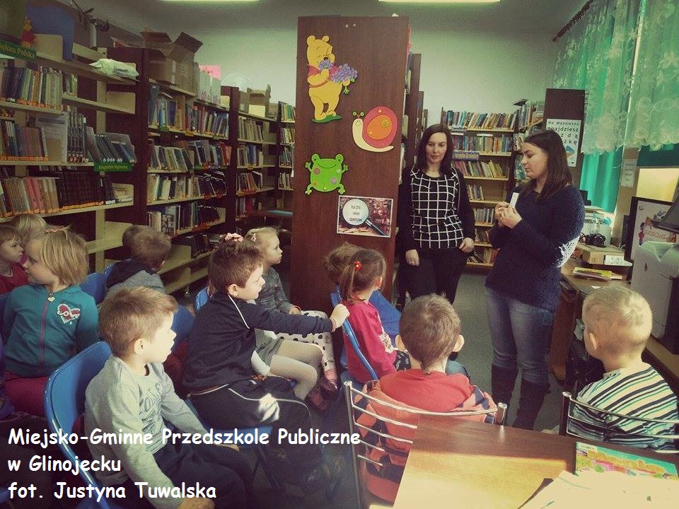 20 lutego w Miejsko-Gminnej Bibliotece Publicznej w Glinojecku odbyła się lekcja biblioteczna pt. "Książka najlepszy przyjaciel człowieka" z dziećmi z Miejsko-Gminnego Przedszkola Publicznego w Glinojecku. Lekcja była przeprowadzona za pomocą prezentacji multimedialnej.