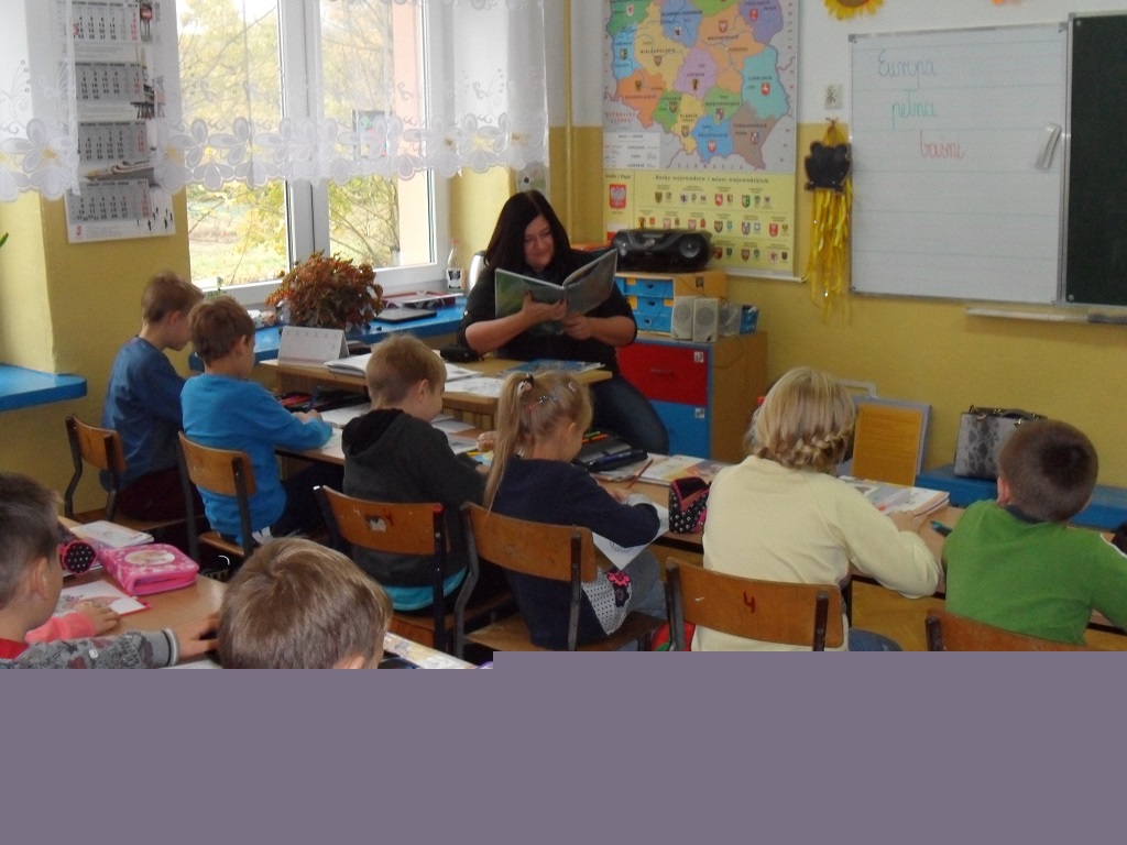 Zajęcia oparte były na książce autorstwa Joanny Laskowskiej pt. "Europa pełna baśni". Zaczęliśmy od przeczytania baśni angielskiej potem austriackiej, belgijskiej, litewskiej czy też portugalskiej. Za każdym razem uczniowie bezbłędnie wskazywali na mapie kraj, z którego pochodziła czytana baśń. Na początku każdego spotkania trzecioklasiści otrzymywali obrazki do kolorowania, które miały rozbudzać wyobraźnie i inwencję twórczą, a także pomóc w utrwaleniu tytułów i autorów baśni.