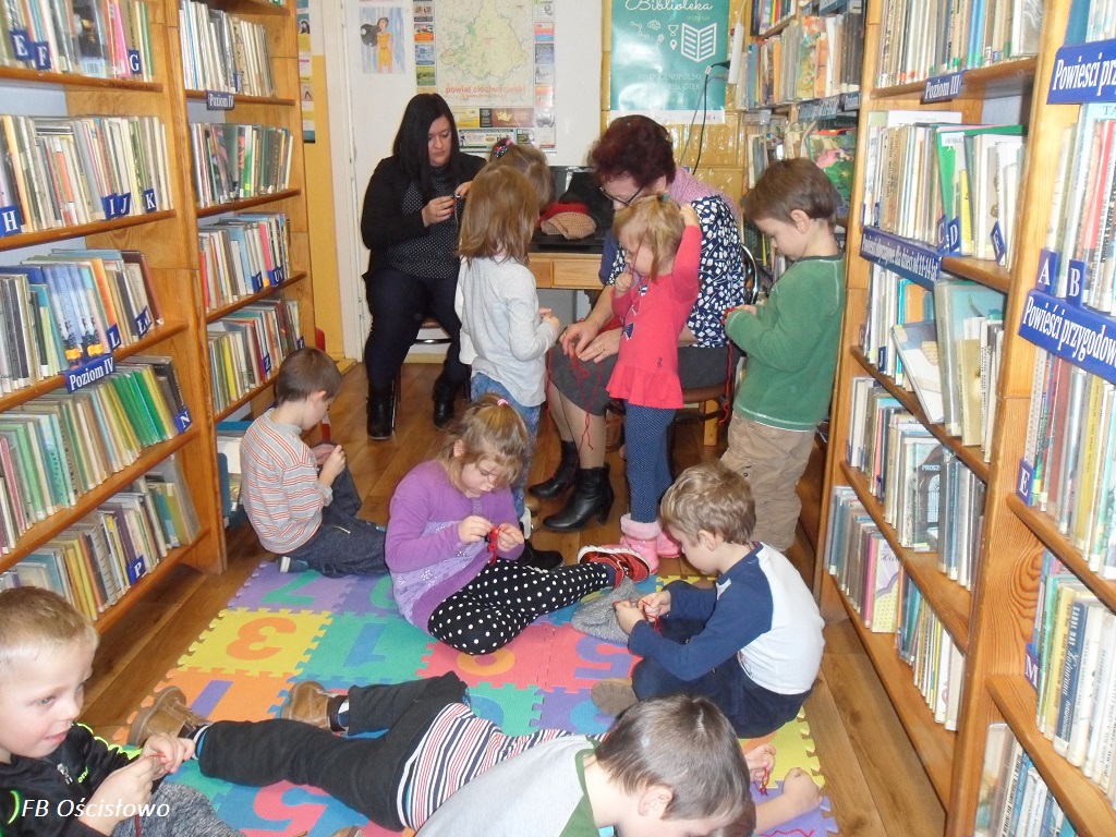 Dnia 22.11.2016 roku w Filii bibliotecznej w Ościsłowie odbyła się lekcja biblioteczna z grupą przedszkolną z ZSO w Ościsłowie. W lekcji udział wzięło 12 dzieci wraz z paniami Martą Perczyńską i Dominiką Jasińską. Gościem specjalnym była pani Zofia Strzemińska, która zajmuje się rękodziełem.