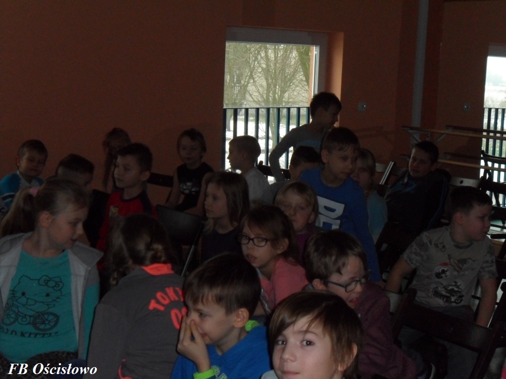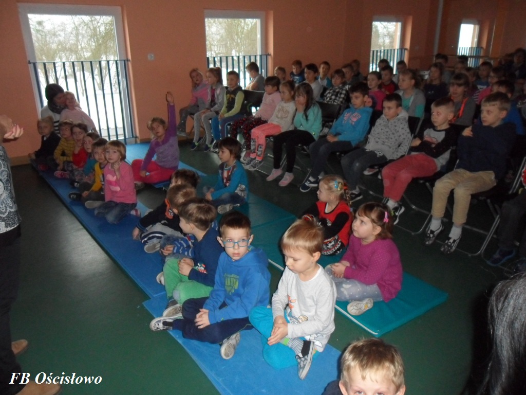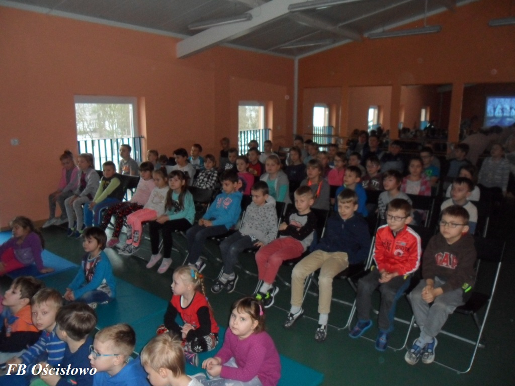 Dnia 02.02.2017 roku odbyła się lekcja biblioteczna dotycząca bezpieczeństwa w czasie ferii zimowych. Organizatorem zajęć była Filia Biblioteczna w Ościsłowie. Lekcja odbyła się w sali lustrzanej Zespołu Szkół Ogólnokształcących w Ościsłowie. W zajęciach udział wzięło łącznie 64 uczniów z punktu przedszkolnego, zerówki i klas I-III wraz z wychpwaczyniami. Zajęcia poprowadzili pani Sylwia Żądłowska i sierż. szt. Dominik Jaworski z Komendy Powiatowej Policji w Ciechanowie.