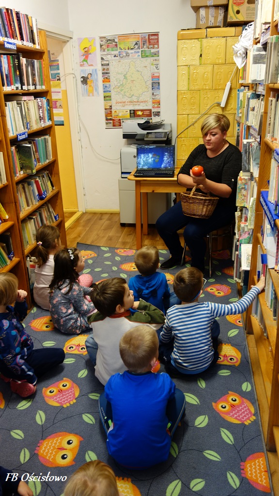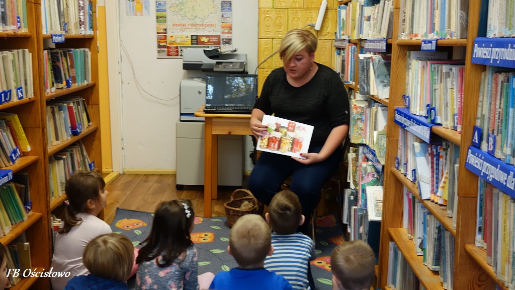Dnia 11.10.2017 roku w Filii Bibliotecznej w Ościsłowie miała miejsce lekcja biblioteczna z grupą dzieci z punktu przedszkolnego przy Szkole Podstawowej w Ościsłowie. W lekcji udział wzięło 9 przedszkolaków wraz z paniami Martą Perczyńską i Dominiką Jasińska. Celem lekcji było poszerzenie zdobytych wiadomości na temat warzyw i uświadomienie dzieciom jak ważną rolę odgrywają w naszej codziennej diecie.