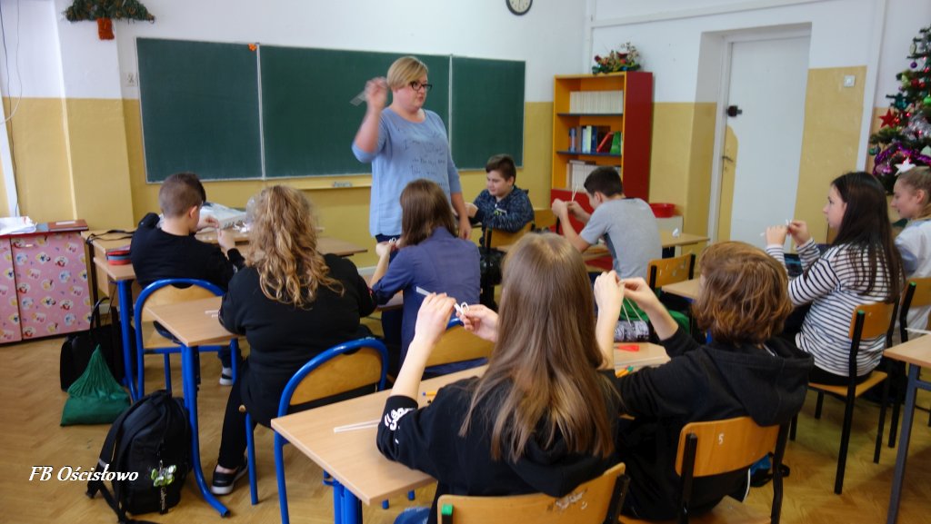 Dnia 14.12.2017 roku w ramach współpracy między Filią Biblioteczną w Ościsłowie a Biblioteką Szkolną w Ościsłowie odbyły się zajęcia rękodzielnicze z wikliny papierowej z klasą VII ze Szkoły Podstawowej Ościsłowie. W zajęciach udział wzięło 11 uczniów wraz z panią Elżbietą Niszczotą wychowawcą klasy VII, bibliotekarzem szkolnym i nauczycielem języka polskiego.