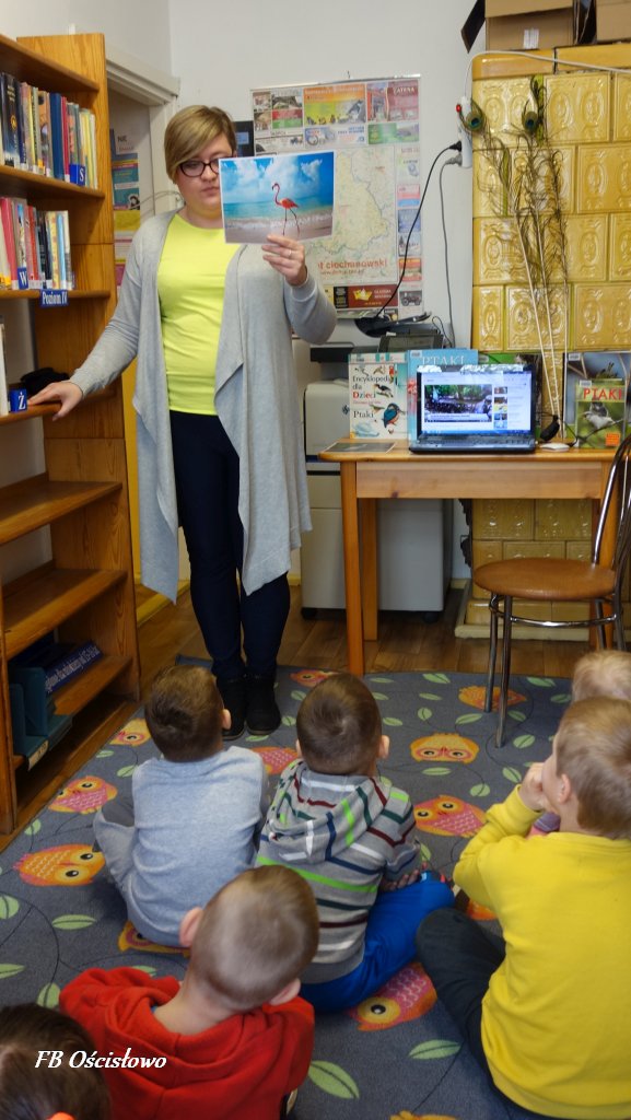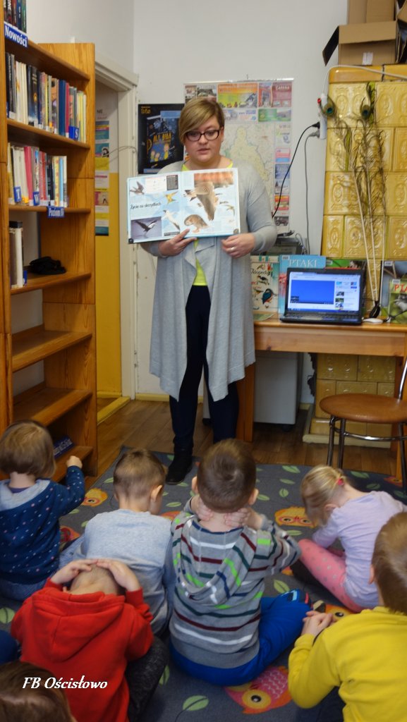 W dniu 28 marca 2019 roku w Filii Bibliotecznej w Ościsłowie miała miejsce lekcja biblioteczna poświęcona ptakom niezwykłemu gatunkowi zwierząt. W zajęciach udział wzięło 10 przedszkolaków z punktu przedszkolnego, przy SP w Ościsłowie, wraz z wychowawczyniami. Celem zajęć było przybliżenie przedszkolakom podstawowych informacji dotyczących ptaków. Zajęcia zostały przeprowadzone na podstawie książki Anity Ganeri „Wszystko o ptakach".