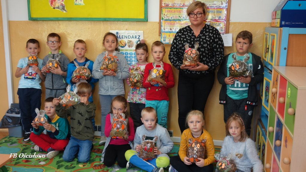 Jesień to jedna z najpiękniejszych pór roku. Obfituje w moc darów i kolorów. Właśnie dlatego postanowiliśmy wykorzystać liście, które już zaczęły opadać z drzew do stworzenia naszych prac. Pierwszaki poinstruowane krok po kroku wykonały urocze sówki, które ozdobią ich klasę. Dzieciom bardzo spodobały się zajęcia i niecierpliwie czkają na kolejne.