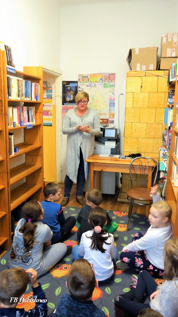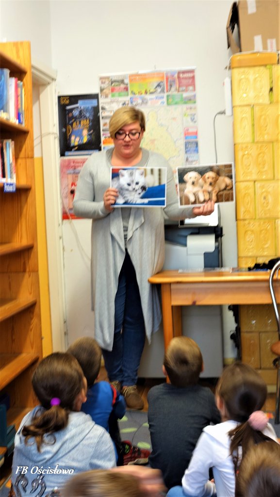 Dnia 29.10.2019 r. w Filii Bibliotecznej w Ościsłowie miała miejsce lekcja biblioteczna z klasą I ze Szkoły Podstawowej w Ościsłowie. Tematem zajęć były zwierzęta domowe. W zajęciach udział wzięło 13 dzieci wraz z wychowawczynią.