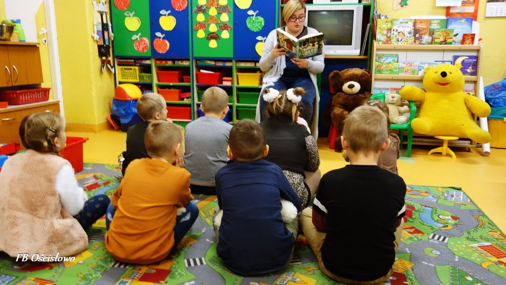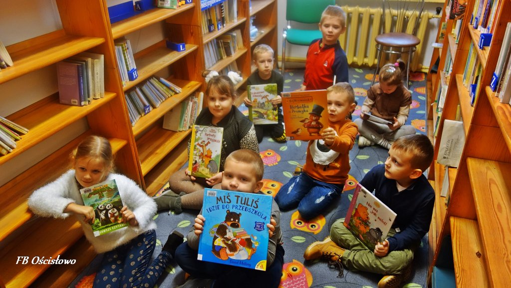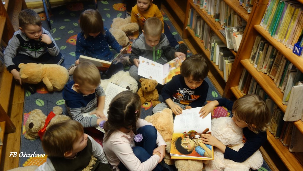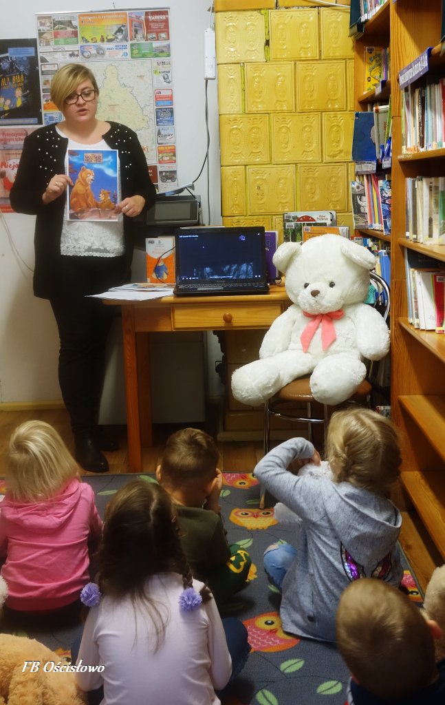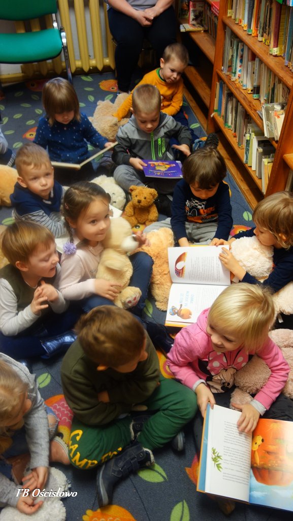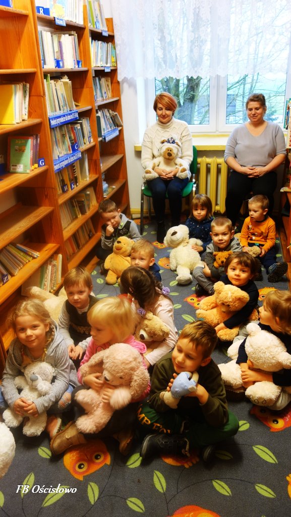 W dniach 25 i 27 listopada Filia Biblioteczna w Ościsłowie gościła u siebie przedszkolaki z zerówki i punktu przedszkolnego z Ościsłowa. Wspólnie świętowaliśmy Dzień Pluszowego Misia, który jest obchodzony od 2002 roku i przypada na dzień 25 listopada. W zajęciach udział wzięło łącznie 24 dzieci wraz z wychowawcami.