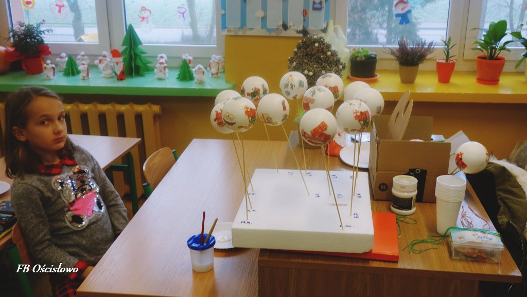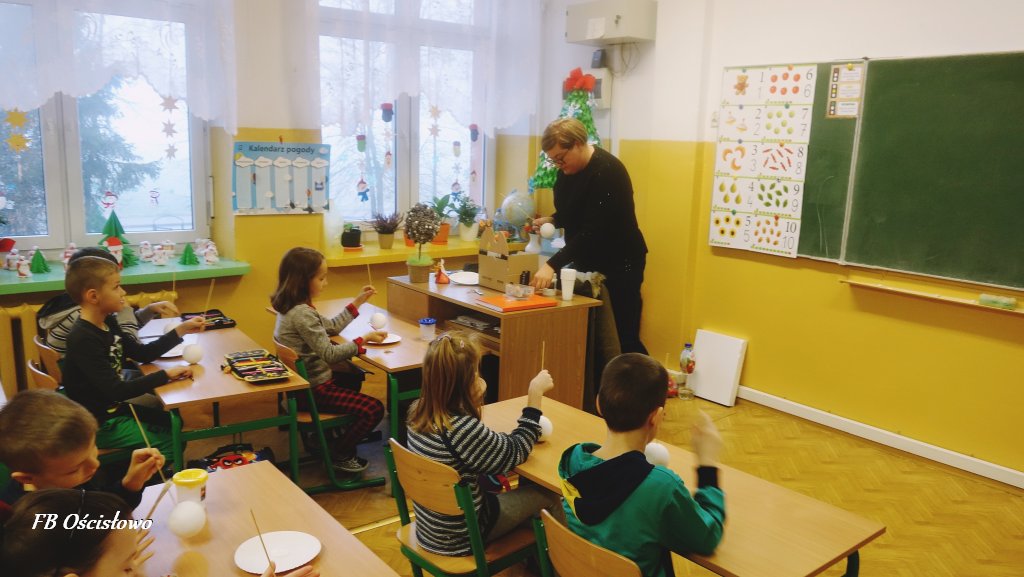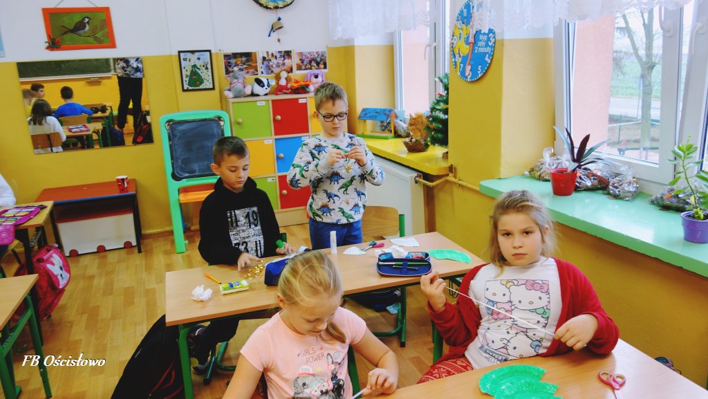 Na przełomie listopada i grudnia Filia Biblioteczna w Ościsłowie w ramach współpracy ze Szkołą Podstawową w Ościsłowie zorganizowała szereg zajęć plastycznych, których motywem przewodnim były ozdoby bożonarodzeniowe. W sumie odbyło się 8 spotkań, w których udział wzięło 91 uczniów i przedszkolaków: z punktu przedszkolnego, zerówki, i klas I-III wraz z wychowawcami. Celem naszych zajęć było rozbudzenie kreatywności i wyobraźni wśród uczestników.