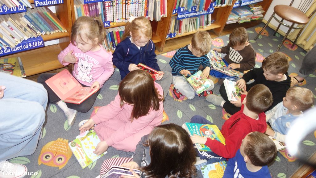 W dniu 15 kwietnia dzieci z punktu przedszkolnego i zerówki ze Szkoły Podstawowej w Ościsłowie uczestniczyły w lekcji bibliotecznej pod hasłem „Książka – od pisarza do czytelnika”. Zajęcia odbyły się w bibliotece, gdzie dzieci miały okazję poznać etapy powstawania książki – od pomysłu autora, poprzez pracę ilustratora i drukarni, aż do momentu, gdy książka trafia do rąk czytelnika.